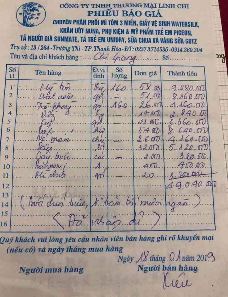 Mua hàng hoá: 49.040.000