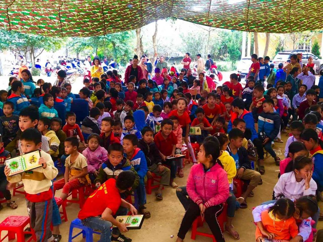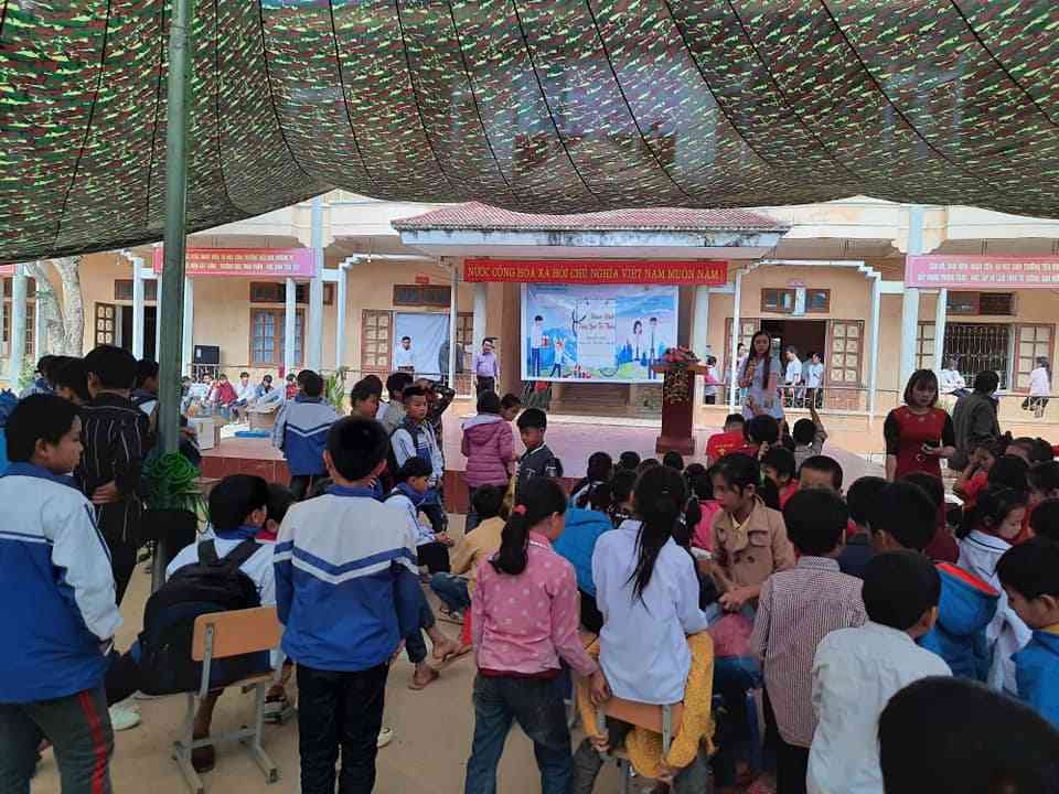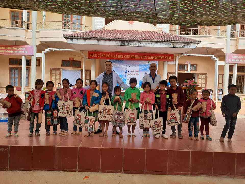 Nhóm các bạn lứa tuổi học sinh tiểu học tại điểm trường chính và tại các điểm bản đã được cùng nhau chia sẻ, vui chơi những trò chơi mang tính giáo dục, thay đổi hành vi về vệ sinh, lối sống. Bên cạnh đó, các bác sĩ, dược sỹ và nhân viên y tế trong đoàn đã khám, tư vấn và cấp phát thuốc cho toàn bộ 316 học sinh có mặt tại điểm trường chính về sức khỏe răng miệng, 182 bé trai được khám, xử lý và tư vấn các vấn đề về nam học. Các con còn nhận được những phần quà đặc biệt phục vụ công tác học tập. Những tủ sách xinh xắn với hơn 150 đầu sách được trao đến tận điểm bản cùng với hệ thống loa phục vụ cho các hoạt động của nhà trường.