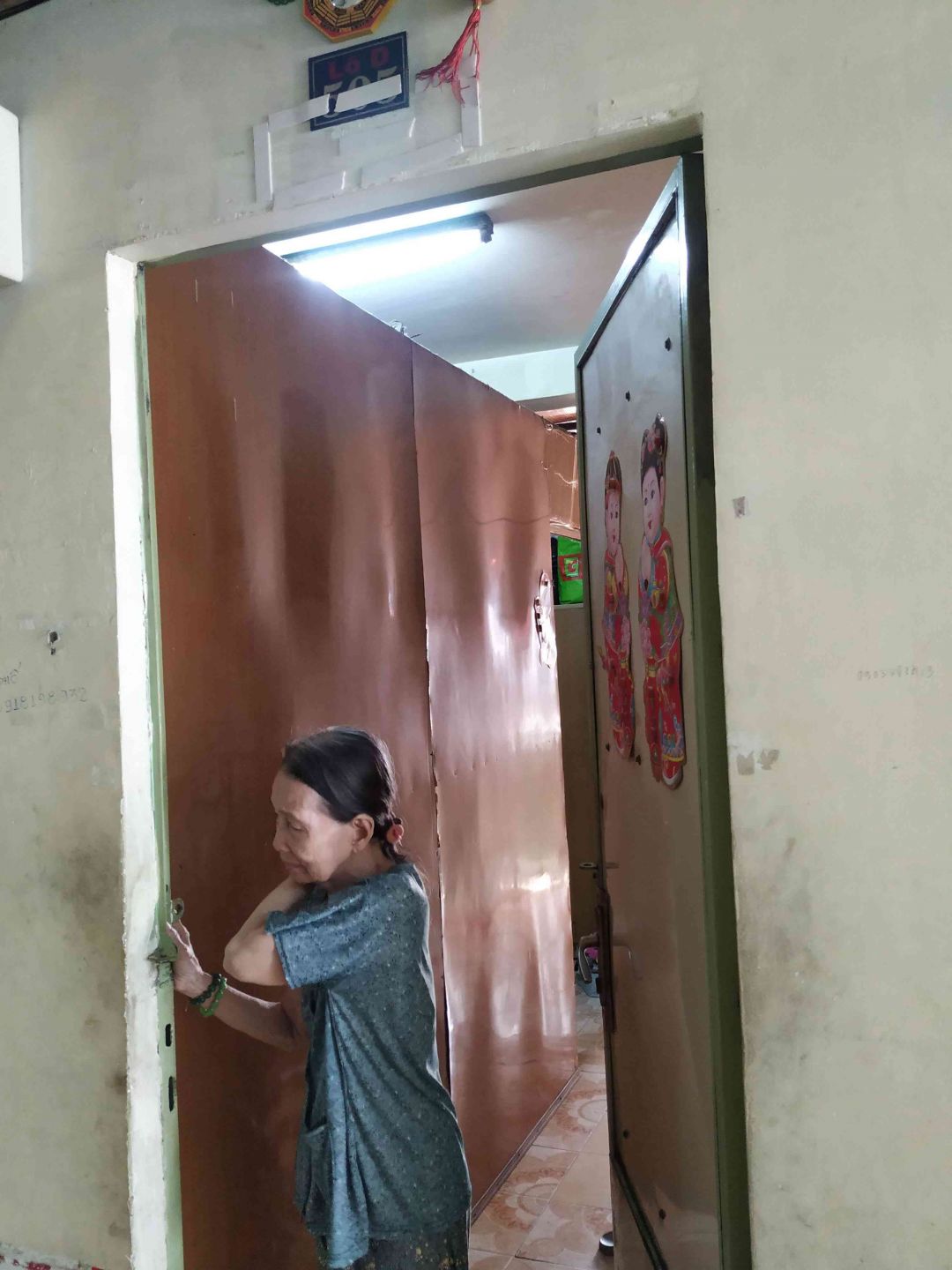 Chị sống trong chung cư nhỏ của cha mẹ, dưới dạng tái định cư nhưng không có tiền trả hết nên phải thuê lại với giá 300,000/ 1 tháng. Căn nhà nhỏ bao gồm 14 người già trẻ lớn bé, được chia thành từng phòng nhỏ cho từng gia đình.. Chị có một người con trai lớn, hiện nay đang làm bảo vệ cho một cửa hàng gần nhà.