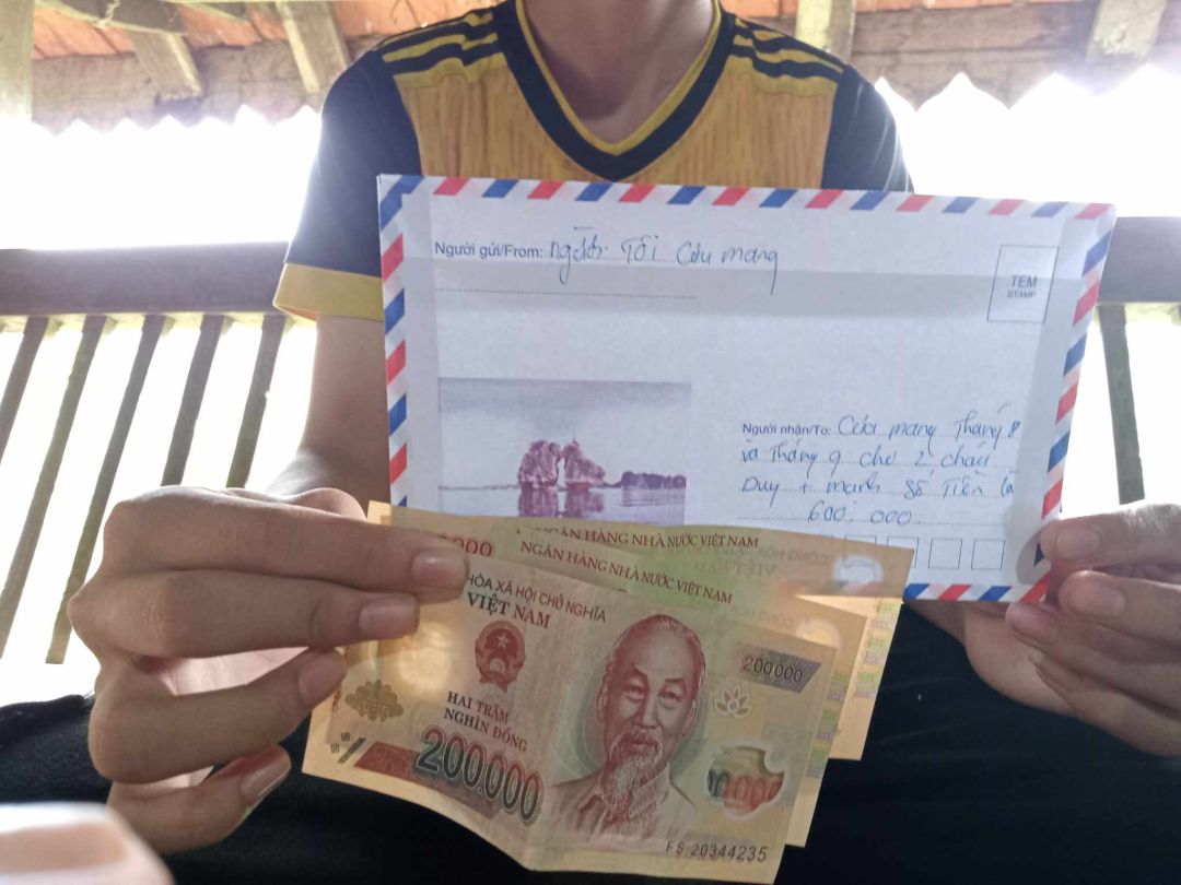 Chào cả nhà, Alexander xin cập nhật hình ảnh trao CMTX hoàn cảnh 2 cháu Duy, Con tháng 8,9 lần 2 số tiền 900.000 đồng. Qua lần trao lần 1 thăm hỏi được biết cháu Duy năm nay lên lớp 11, còn cháu Mạnh Con bắt đầu lên cấp 2 còn thiếu vở viết. Tụi con đã liên lạc với bác @kim bang và được bác hỗ trợ phần vở cho 2 cháu với kinh phí dự trù 500.000 đồng (25 quyển vở mỗi cháu giá 10.000 đồng/quyển). Tụi con đã trao kèm 200.000 đồng/tháng từ bác @kim bang chưa trao ạ. Cảm ơn cả nhà