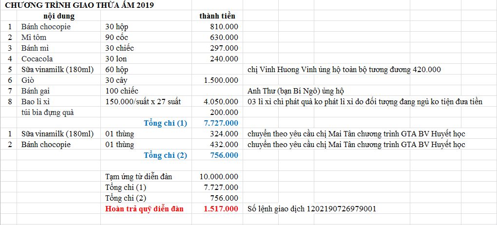 Đầu năm không đăng được hình, em xin đăng lại báo cáo thu chi Giao thừa ấm