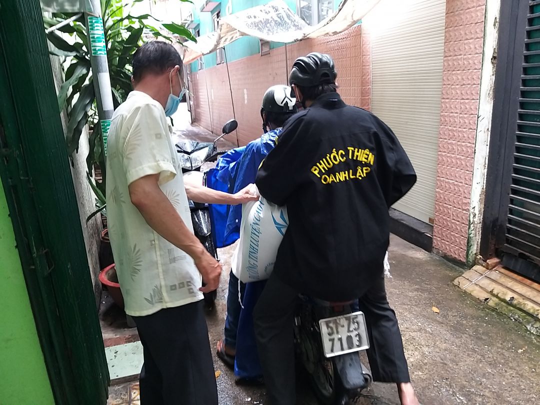 Ngày 08 tháng 08 DucTai đã hẹn chú Ba Oanh và anh em trong đội mai táng từ thiện đến nhận 100kg gạo và 5 triệu CMKTX để chú mua thêm dụng cụ và trang thiết bị.