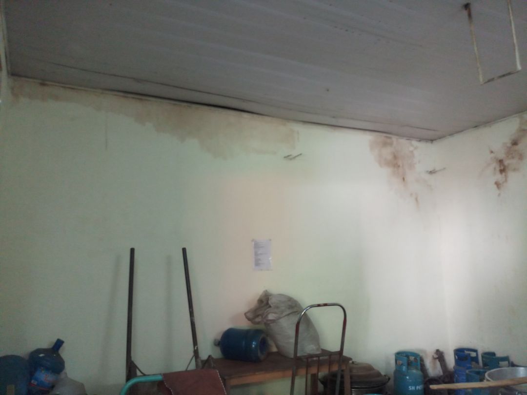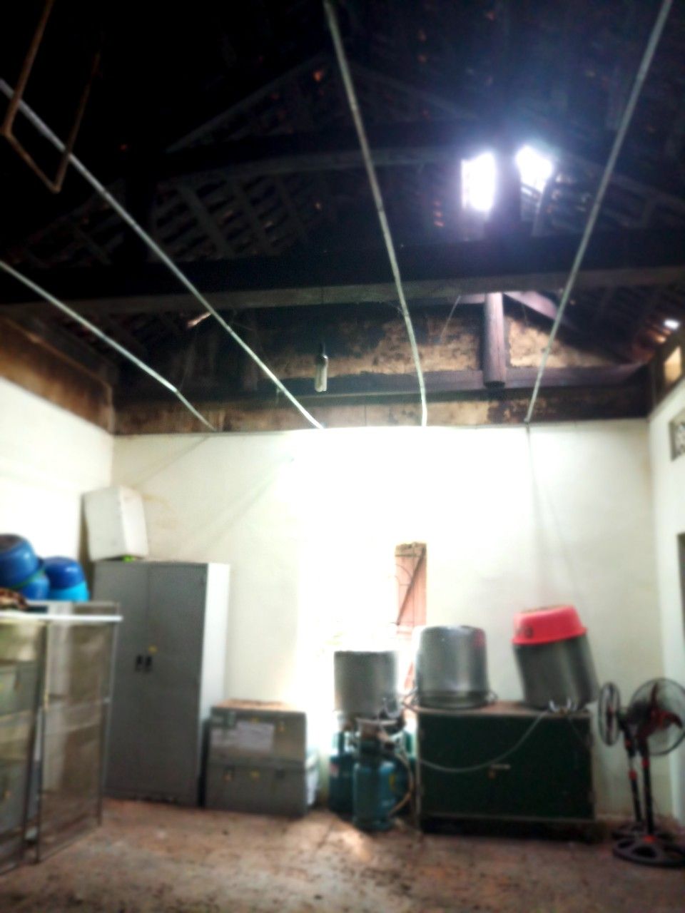 - Mái cũ của nhà bếp được lợp bằng ngói cừa trên luồng, mèn... gỗ và đã lâu năm dẫn tới một sô chỗ bị xệ xuống, một số chỗ thì ngói bị vỡ dẫn tới nước chảy vào trong trần nhựa và đỉnh tường.