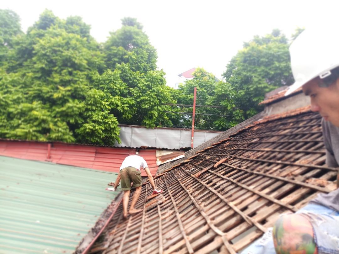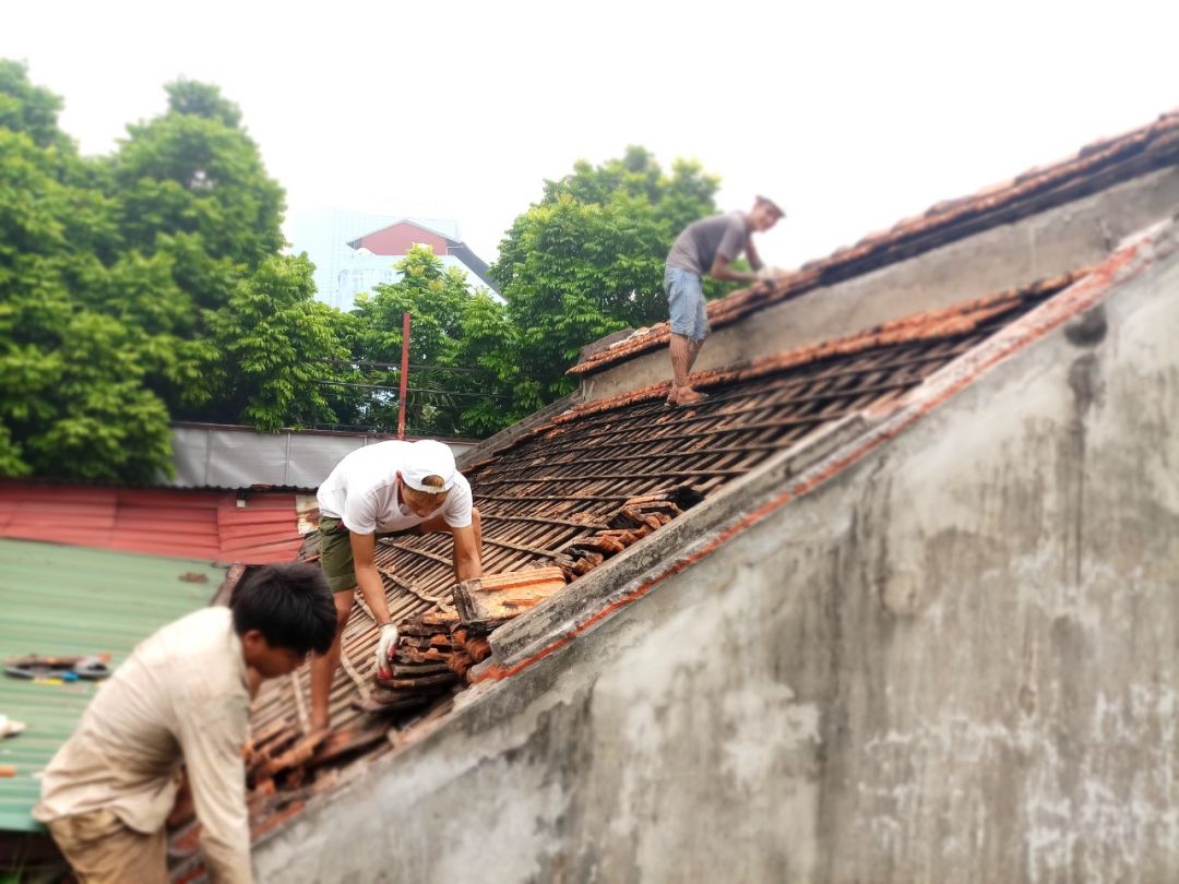 - Lơp lại mái nhà, tận dụng ngói cũ đã lọc  và mua bổ sung ngói bị thiếu.