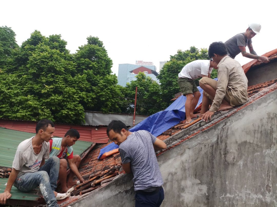- Tháo mái ngói và lọc ngói, viên nào còn dùng được sẽ giữ lại vệ sinh để lợp lại, viên nào không dùng được nữa thì sẽ chuyển đi đổ.