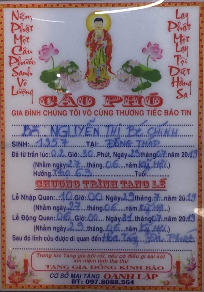 Tối 30/7/2019 vừa qua 6x ghé thắp hương cho chị Bé Chính và gửi tới Gia đình chị ấy 6,000,000đ tiền ủng hộ đám tang của chị ấy mà quên không cập nhật để cả nhà nắm được.