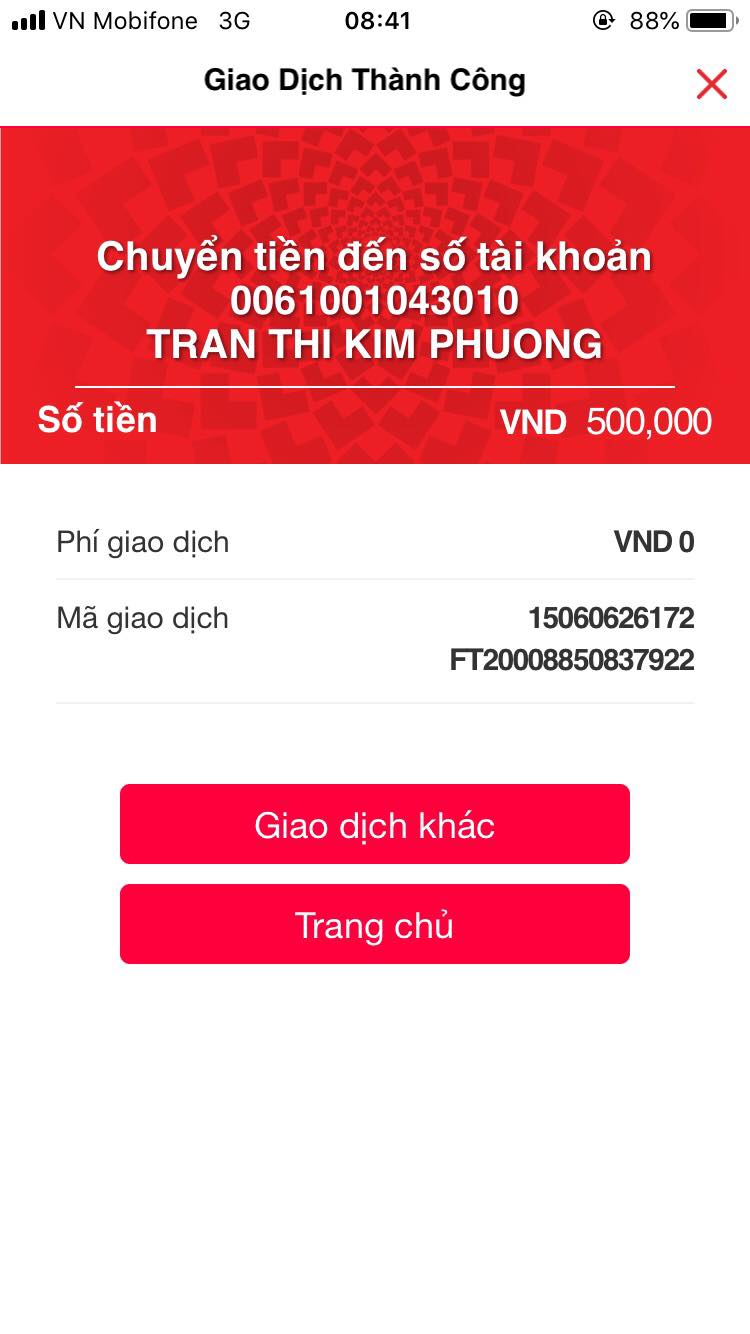 5/ Cô Hồ Nguyệt Tuyết Mai : 300,000đ