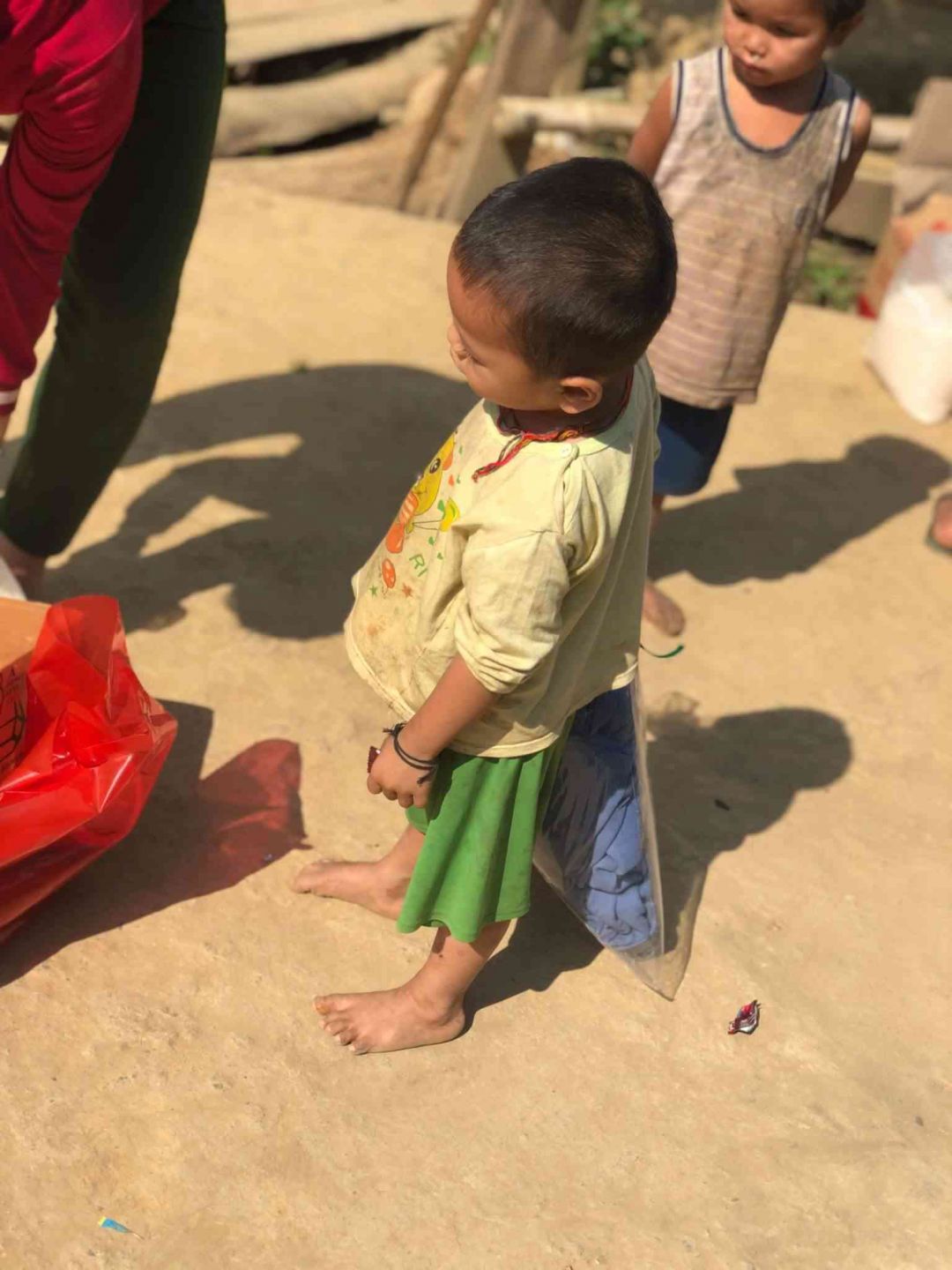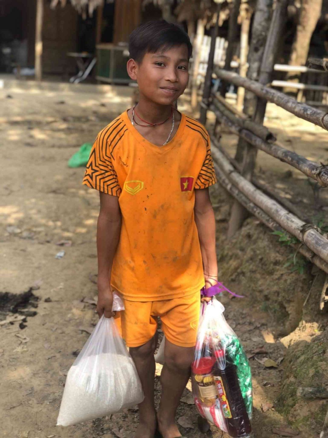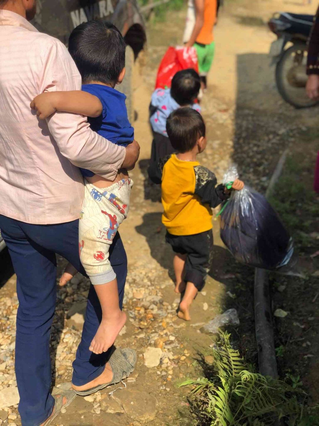 Thay vì trao tại uỷ ban , muốn gần gũi kết nối với người dân hơn nên tụi con cùng đoàn đã cùng với bộ đội biên phòng xuống tận thôn bản để trao quà cho bà con . Xuống mới thấy nhà tranh mái lá đơn sơ , cuộc sống chả có một vật gì gọi