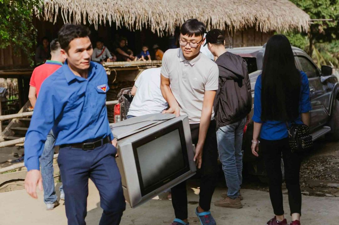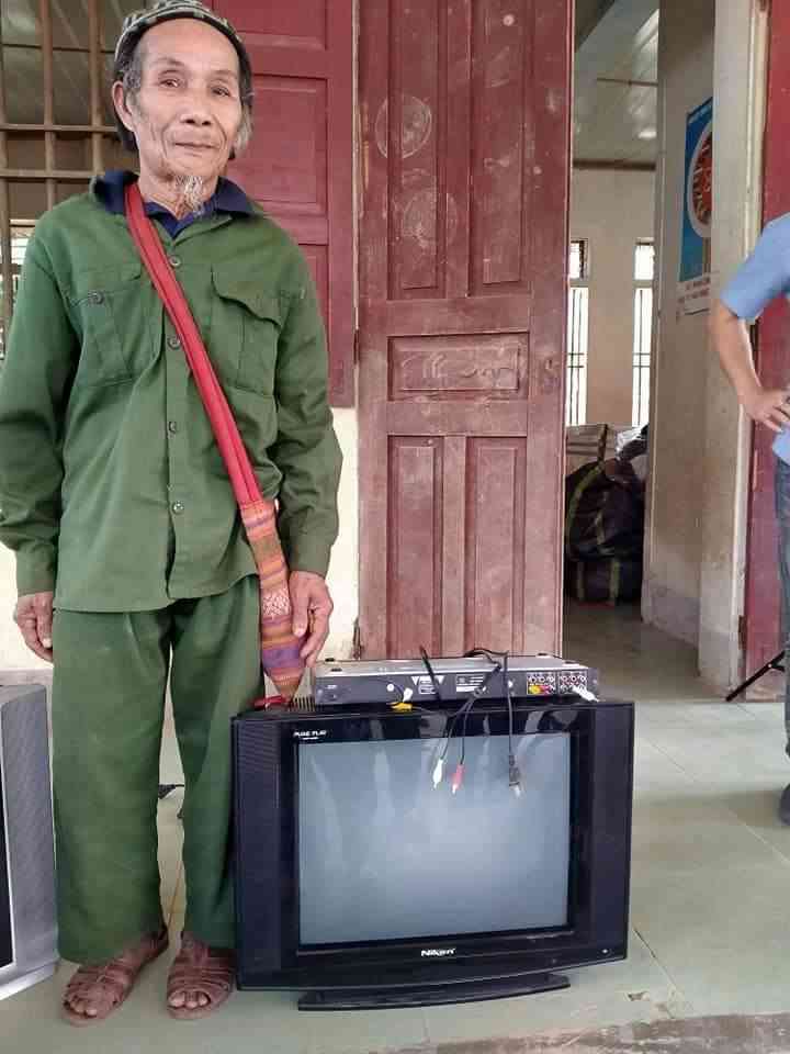 được 3 chiếc ti vi cũ những vẫn dùng tốt được gửi tặng cho bà con trên bản . Một chiếc đã trao tặng cho nhà văn hoá thôn . Hai chiếc còn lại đã tặng cho hai cụ thuộc hoàn cảnh khó khăn trong thôn khi nghe cụ nói từ nhỏ đến giờ cụ chưa từng có chiếc ti vi nào để mà xem .