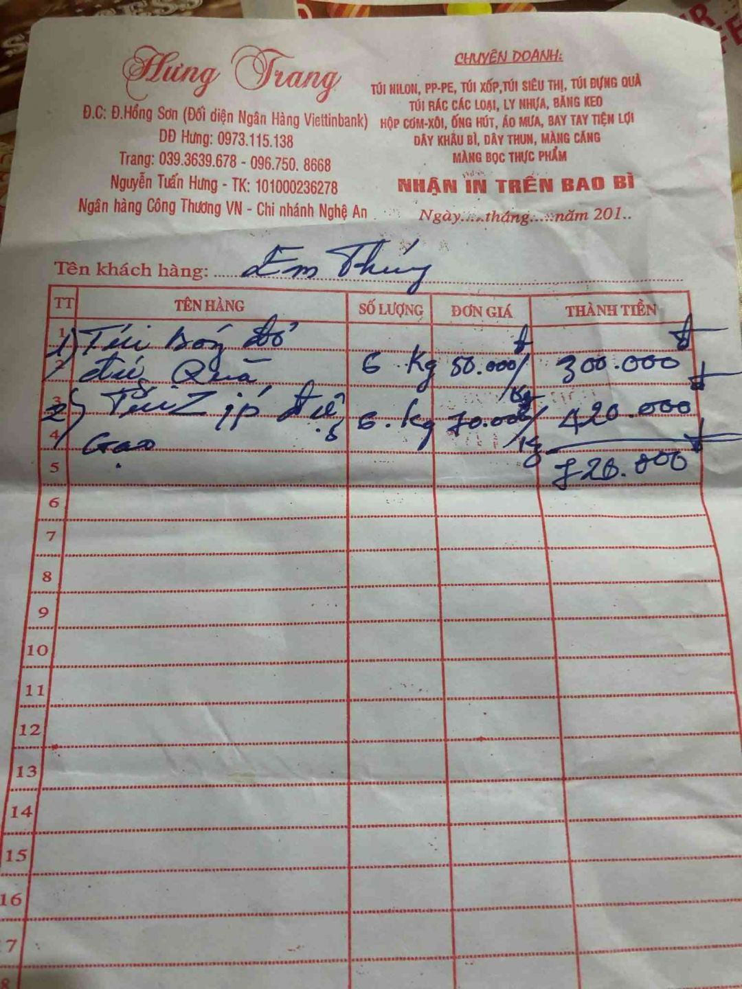 - Túi bóng zip đựng gạo 220 ( dự phòng 20 chiếc túi lỡ bị bục rách )/ 6kg : 420.000đ