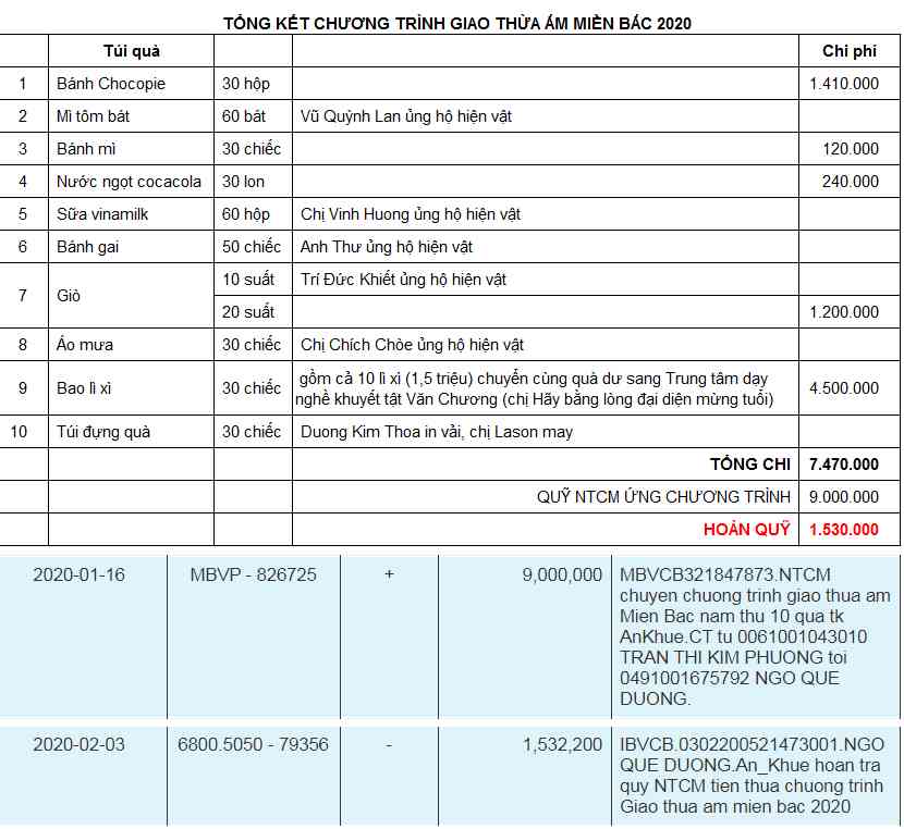 Các thành viên trở về đều ướt nhẹp sau cơn mưa dữ, thậm trí có chỗ mưa đá may kịp trú, nhưng những túi quà còn lại thì đều được bảo quản tốt nhất nên chẳng bỏ đi chút gì, một số hộp chocopie ướt nên bóc bỏ vỏ giấy. Và chương trình chỉ thực sự hoàn thành vào mùng 1 Tết khi toàn bộ số quà GTA còn lại được chuyển đến Trung tâm dạy nghề cho người khuyết tật ở Văn Chương. Lúc đầu tôi hơi ngần ngại sợ đầu năm sẽ làm các bạn ở trung tâm thấy buồn khi quà chuyển cho họ lại vốn dư ra từ một chương trình trước đó. Cuối cùng, các bạn ở trung tâm đón nhận một cách thân tình nồng ấm khiến chúng tôi nhẹ lòng sau khi len lỏi qua những con ngõ ngoắn nghèo hẹp và lép nhép bùn cống tràn lên sau cơn mưa.