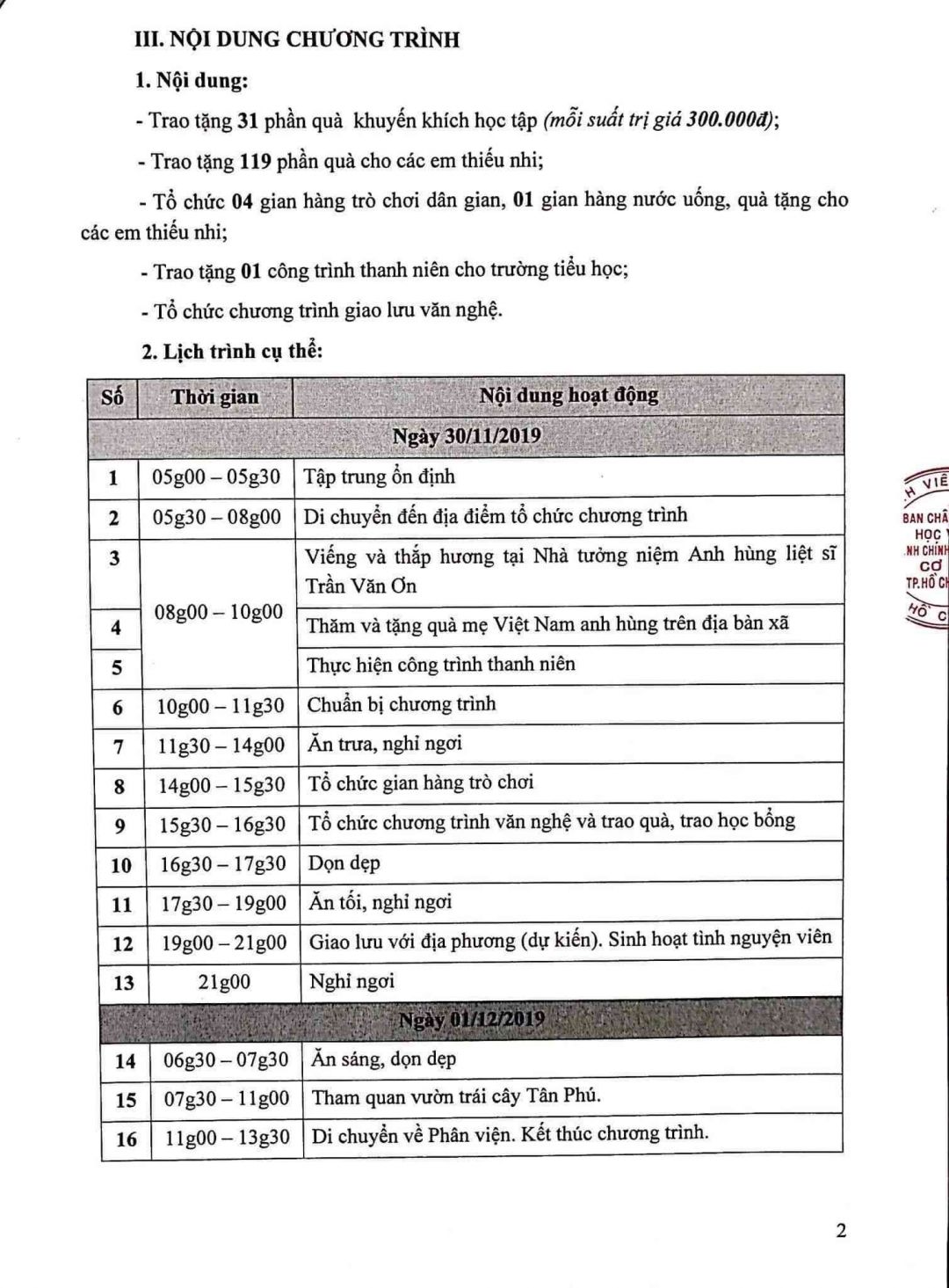 chương trình của chúng em diễn ra từ ngày 30/11 đến ngày 1/12 tại huyện Châu Thành, Tỉnh Bến Tre.
