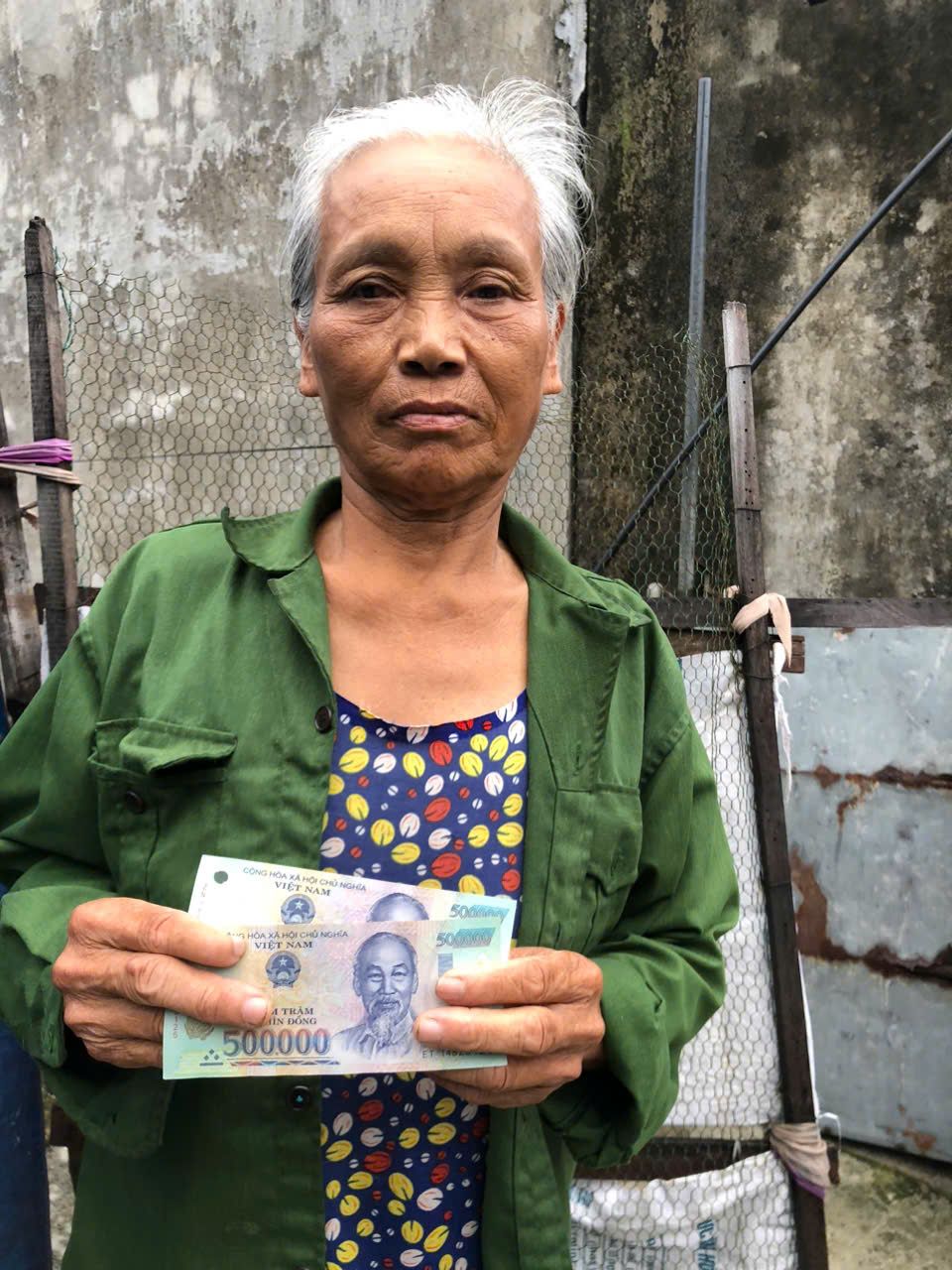 Do đến sớm quá nên gia đình chưa dậy, chỉ có chị Hoan đứng ở cổng nên HBL đã trao luôn tiền ở đây.