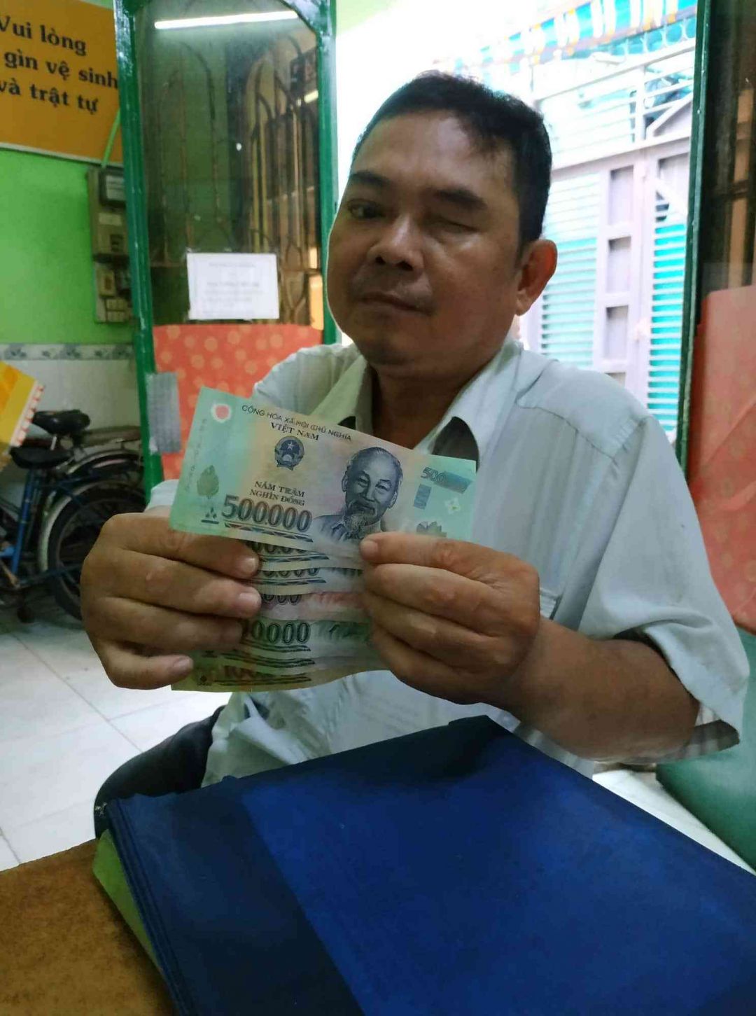 Chú Nhân cũng thường đi bán vé số, mỗi ngày bán được khoảng 50 tờ.