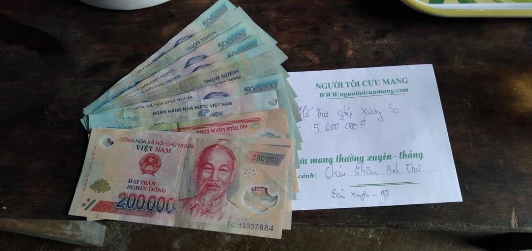 Sáng nay 14/5 Nhóm ht đã trao 5.600.000đ hỗ trợ bé chuẫn bị đi mổ ghép hộp sọ