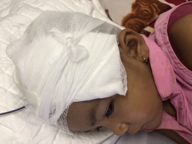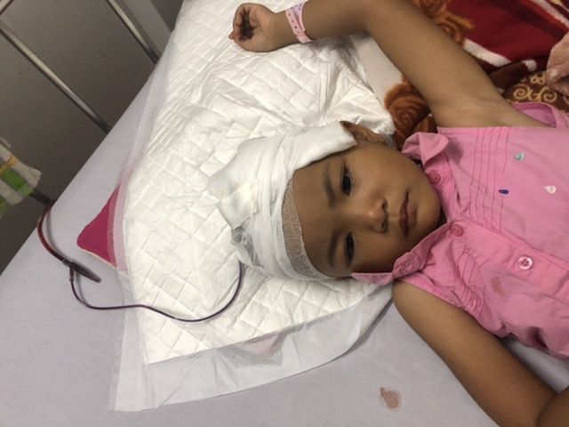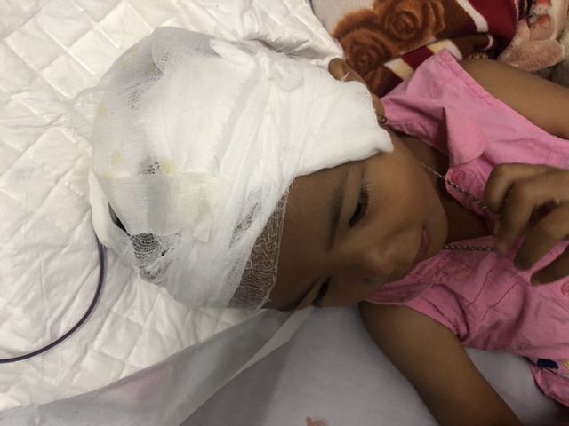 Ngày 20/5 ca mỗ ghép hộp sọ của cháu đã thành công, hiện cháu đã tĩnh táo, ăn được cháo,nói chuyện với bố mẹ.