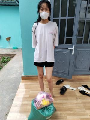 Hôm nay em đã đi trao phần quà CMTX tháng 7/2021 đến hộ bé Kiều Oanh rồi ạ.