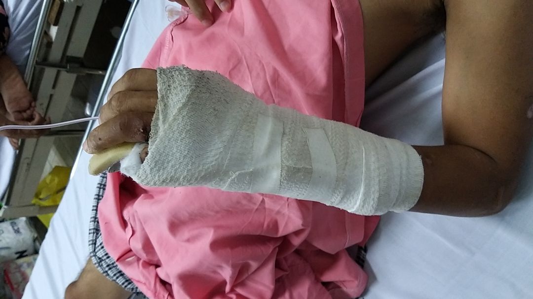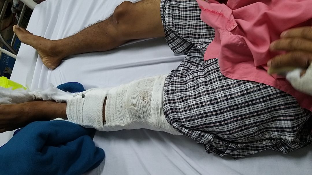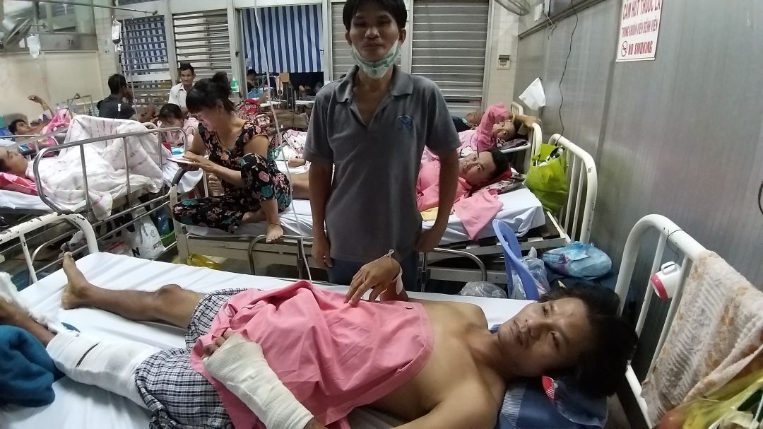 Khoảng 1 tháng trước anh Đa trên đường đi làm thì bi xe lôi tông, bên xe lôi hỗ trợ 30 triệu để điều trị.