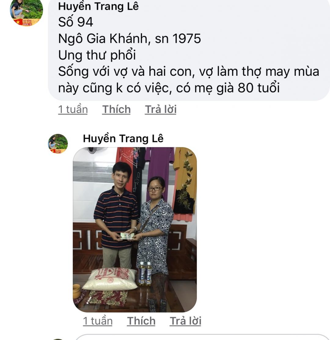 Còn 4 suất quà gồm 40 gạo (chỉ còn 32kg do hao hụt và bị ướt một góc bì gạo bị ẩm mốc), 4l dầu ăn và 800.000 đồng tiền mặt, em tính xin hiện vật dư này cho nhóm bệnh nhân chạy thận nhân tạo mà chúng ta có tới trao quà đợt vừa rồi ở xóm trọ cạnh BV, còn tiền dư e sẽ trao trả lại cho quỹ diễn đàn. Nhưng hiện tại tình hình dịch bệnh đang căng thẳng nên em cũng chưa thể trao phần hiện vậy này, em sẽ sắp xếp rồi báo lại sau ạ!