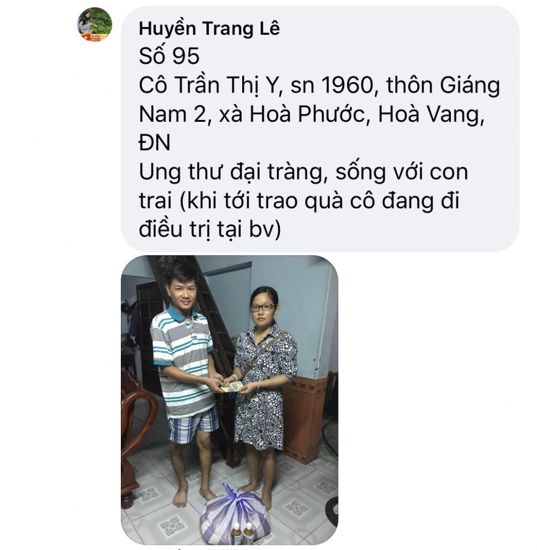 Chốt lại cuối cùng là chương trình thực hiện trao được 96 suất quà, trong đó riêng khu vực Quế Sơn - Quảng Nam là 40 suất, các khu vực còn lại của hai địa bàn là 56 suất (riêng 1 suất số 03 ban đầu có đưa lên là hoàn cảnh bé Minh Anh diễn đàn cưu mang nhưng do ko có thành viên nào đi trao được nên e đành phải để trống).