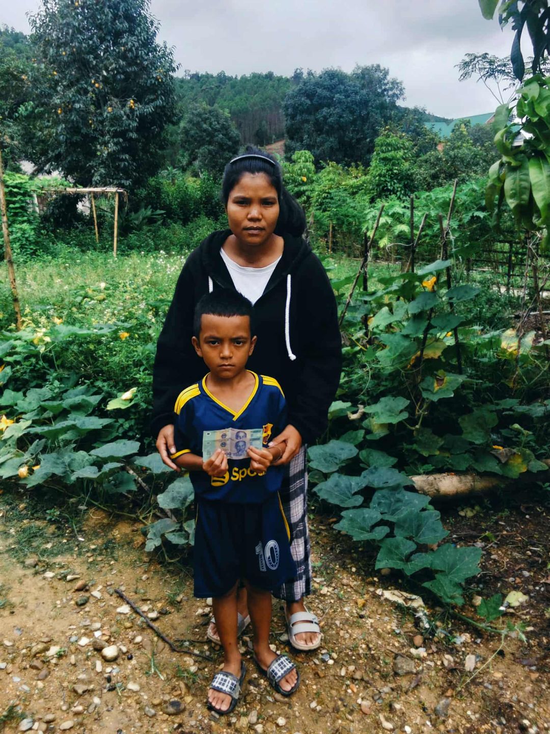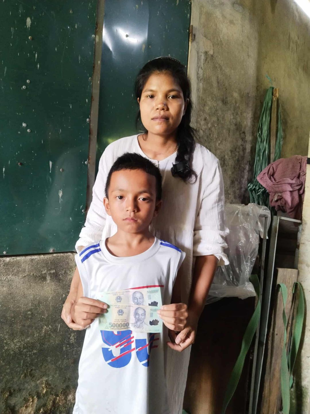 Em trao quà tháng 9 cho mẹ con em Hiền với số tiền là 1 triệu đồng.