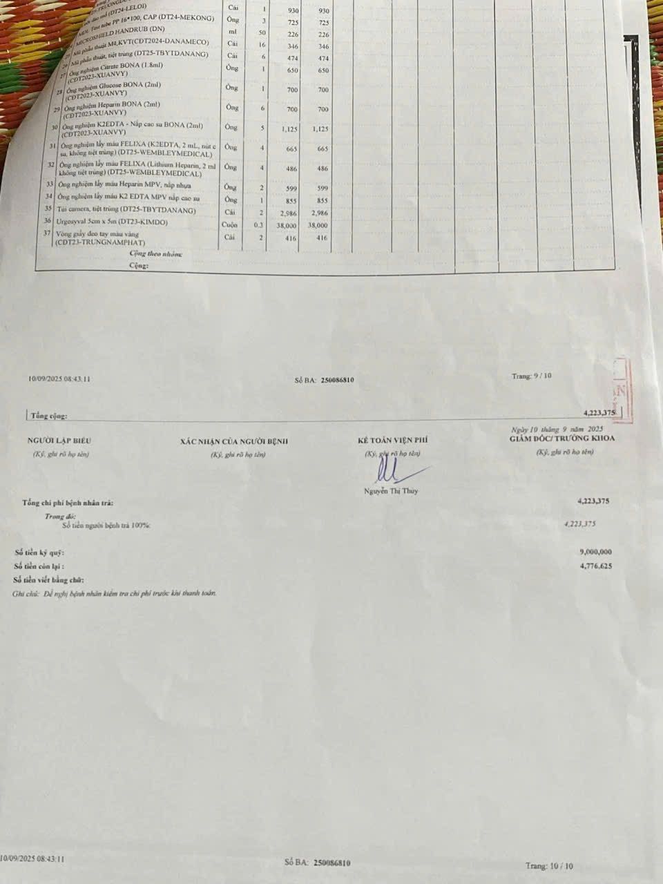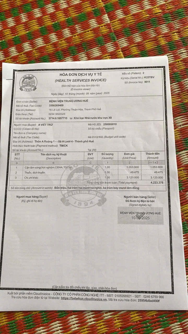 Em tên là Blúp Thìn, em xin gửi hình ảnh hoá đơn viện phí của anh Trừ.
