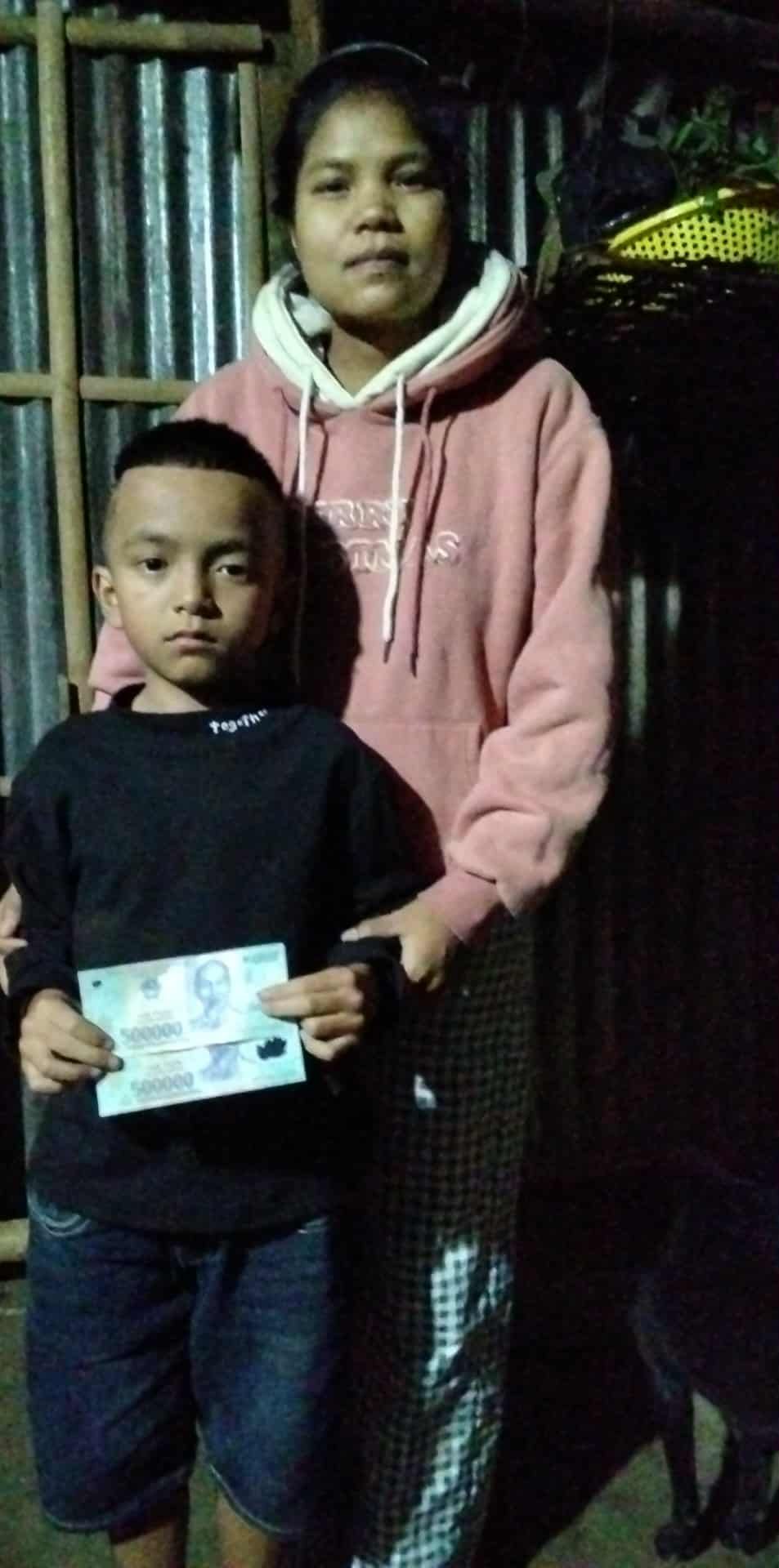 Em trao quà tháng 10 cho mẹ con em Hiền với số tiền là 1 triệu đồng.