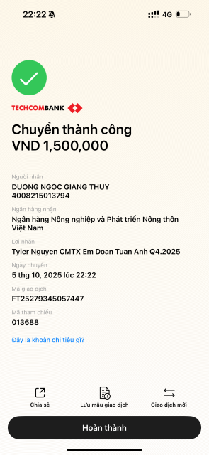 Em Wendy đã nhận ck t4,t5, t6 1.500.000đ