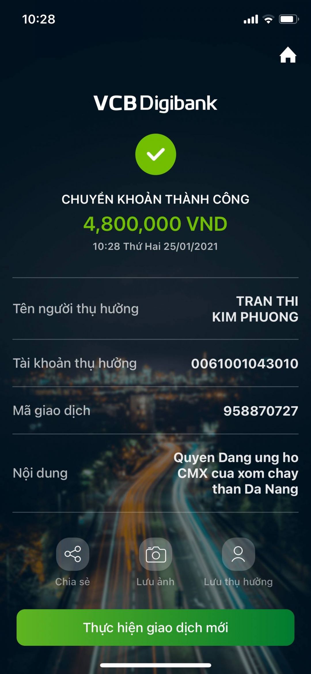 @Thocon : Em chuyển tới Linhthuc 7,200,000đ tiền thực hiện chương trình Cây Mùa Xuân 2021 tại Đà Nẵng dùm nhé.