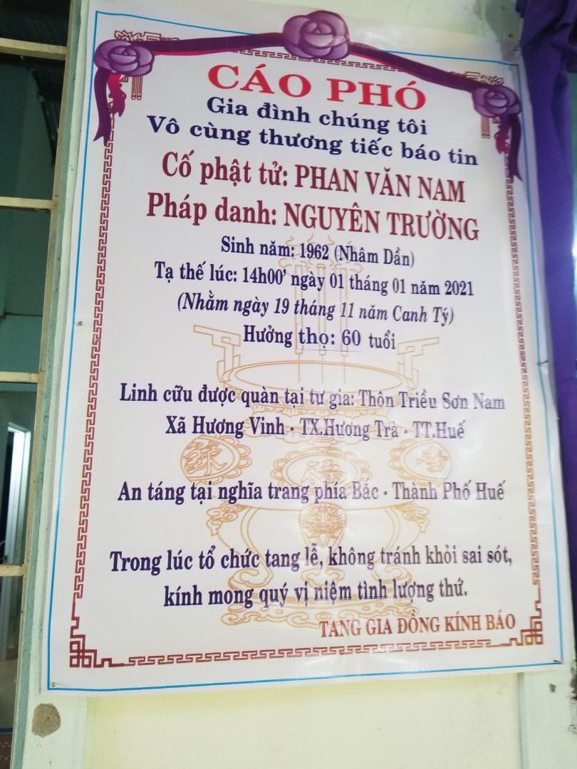 Chiều nay, lúc 16h30, ngày 6/1/2021. Nhóm Huế đi thăm và viếng anh Nam.