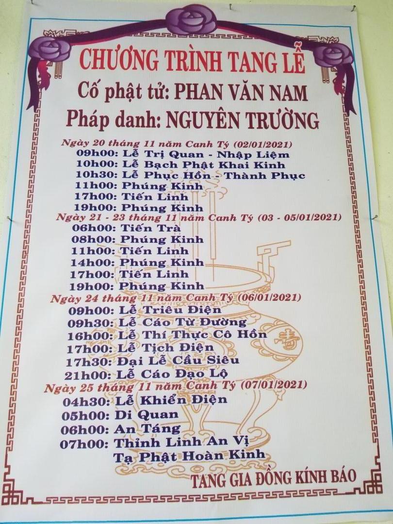 Anh Nam đã từ trần lúc 14h00 ngày 1/1/2021. Sang ngày 2/1/2021 mới khâm liệm và đám dự kiến đưa vào ngày 7/1/2021. Vợ anh mất vì ung thư, nay anh cũng vì ung thư mà mất. Giờ để lại 2 con bơ vơ không cha mẹ.