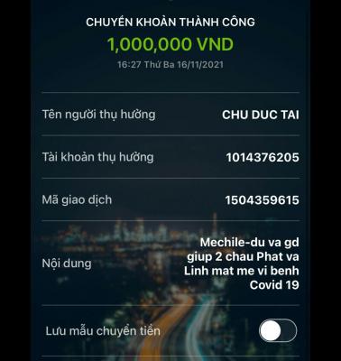 Xét thấy gia đình 2 bé cũng tương đối khó khăn, DucTai đề xuất CMKTX cho 2 bé 1 triệu đồng để động viên tinh thần 2 bé.