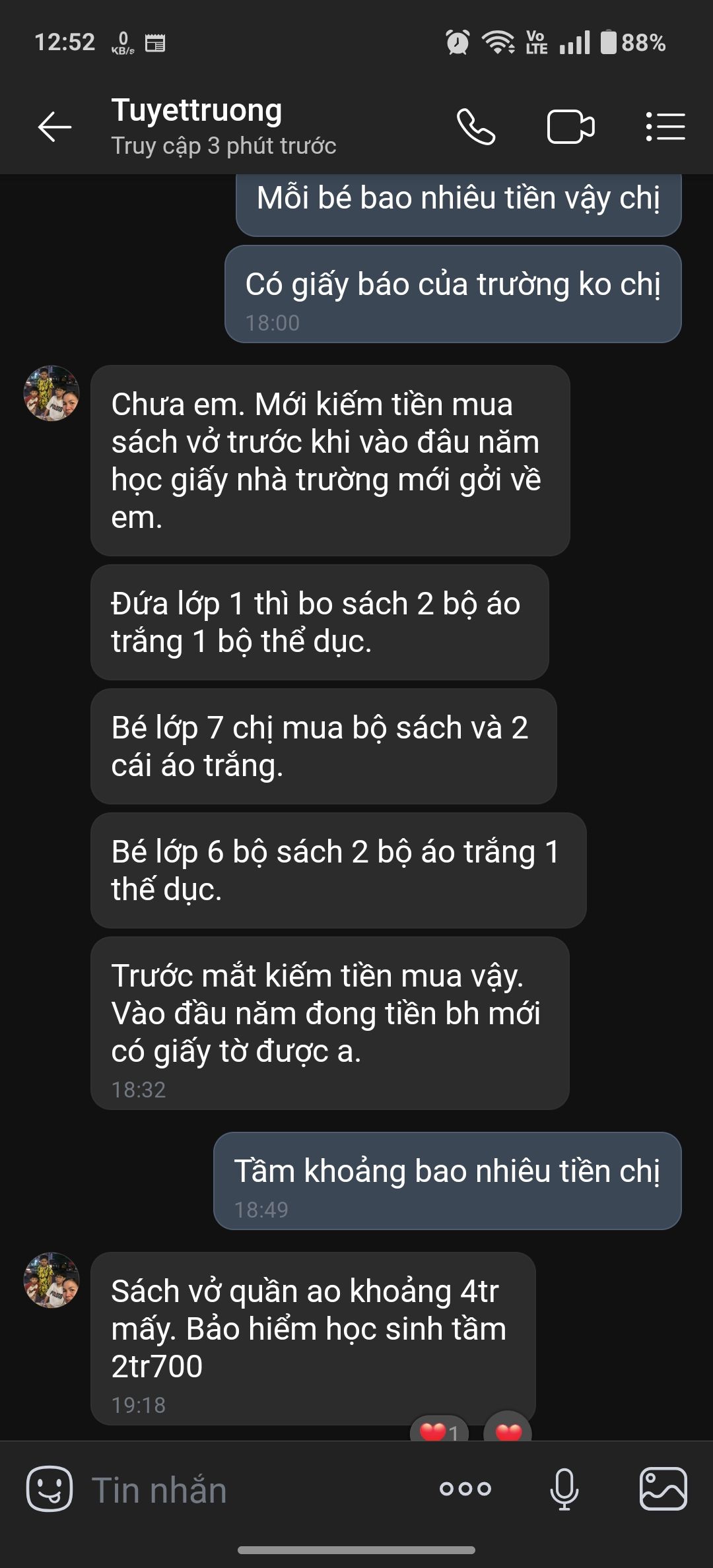Letuantu đề nghị hỗ trợ CMKTX 3,000,000đ cho chi phí đầu năm học của 2 bé.