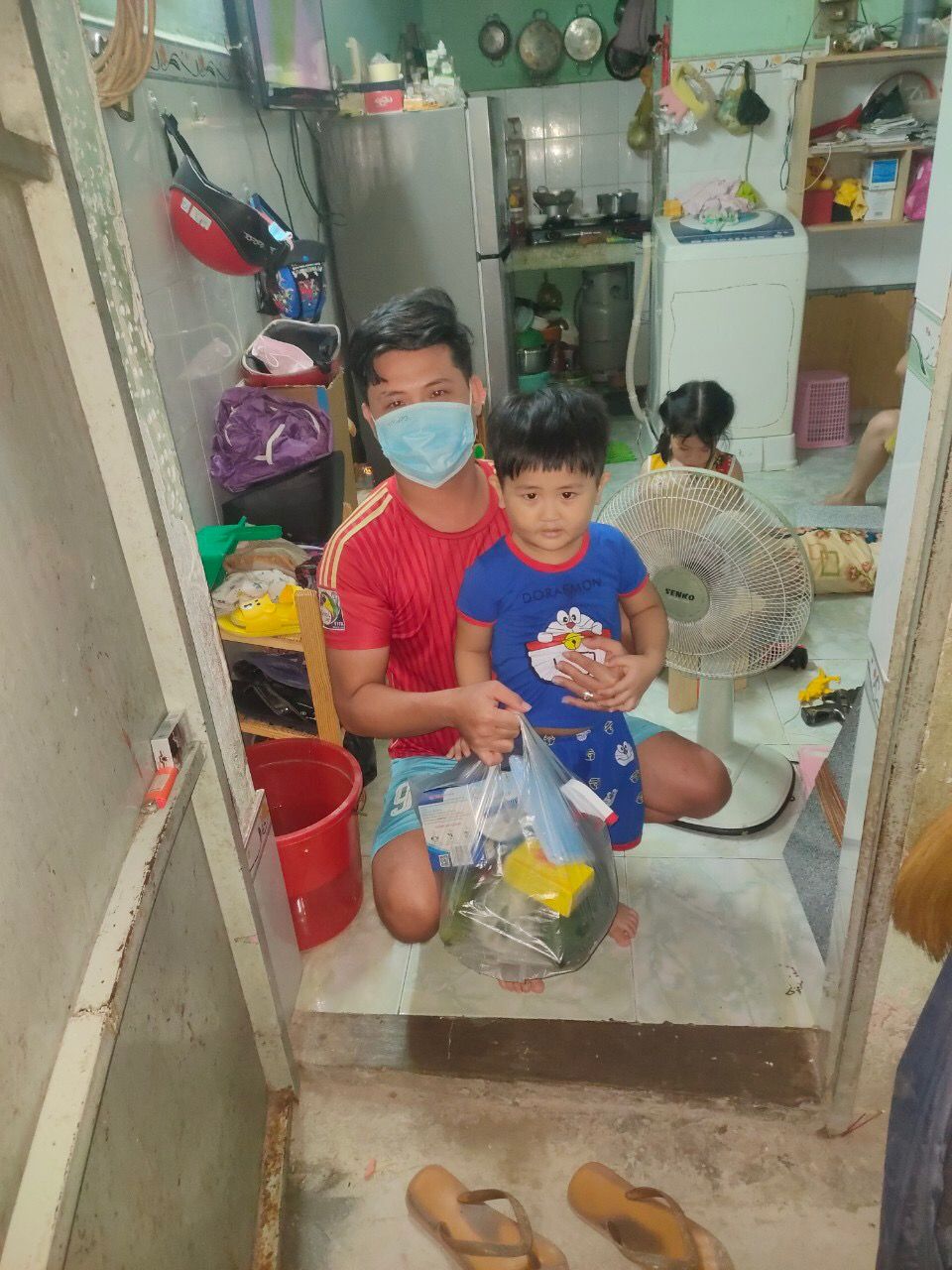 Chúng ta sẽ hỗ trợ rau củ và phần thuốc, khẩu trang, dung dịch sát khuẩn còn tồn nhé.
