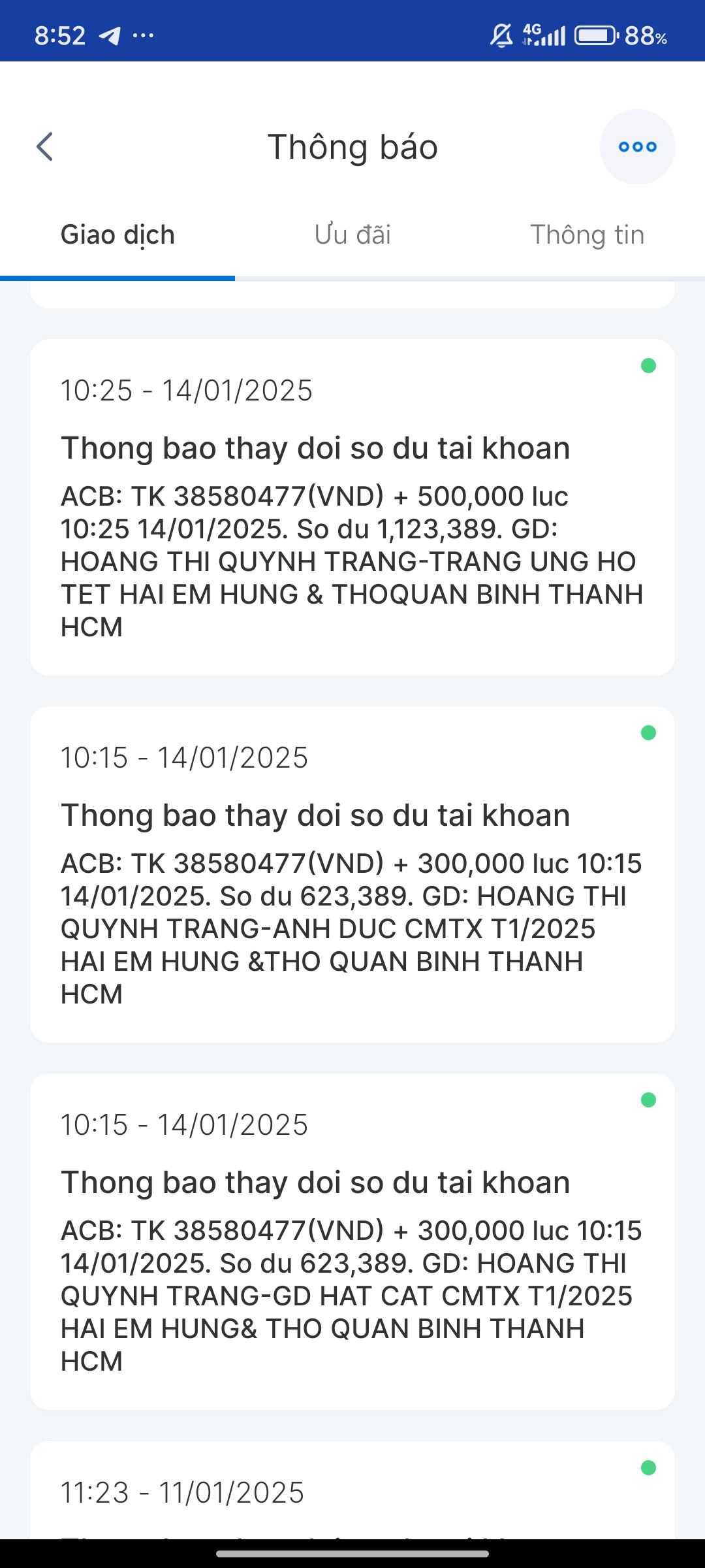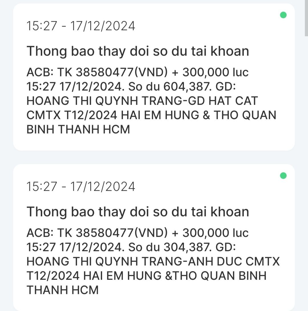 Dạ con xin chào cả nhà ạ. Con là Nguyễn Hữu Thọ con đã nhận được CMTX T5, CMTX T6, CMTX T7, CMTX T8 và nhu yếu phẩm con xin cảm ơn GD HAT CAT, cô Trang và quán cơm 2.000₫ đã hỗ trợ anh em con. Dạ trong tháng 6,7 vừa qua thì con cũng vừa thi xong và cũng có kết quả dù cố gắng nhưng điểm không như con mong muốn nhưng con cũng không nản chí con cũng tận dụng đà học thì con cũng học thêm nhiều thứ như học thêm tiếng anh hay con tìm hiểu và học thêm về ngành khoa học dữ liệu con đang theo đuổi. Thời gian qua thì con cũng có đi làm quán cà phê con làm cũng khá ổn và học thêm nhiều kĩ năng như giao tiếp với khách với chủ hay với các bạn làm chung con cũng có học hỏi được cách làm matcha latte ạ hihi. Mà do ông ngoại lớn tuổi, hay quên với nhà không có ai đưa đón bà ngoại đi làm, coi chừng nhà nên con nghỉ để ở nhà phụ giúp và học ạ. Con có tranh thủ thi chứng chỉ MOS PowerPoint và con cũng đậu được đại học nhưng còn thiếu học phí và nhờ có chương trình Heartbank đầu tư cho tương lai và mọi người hỗ trợ nên con có thể tiếp tục giấc mơ đại học. Con xin cảm ơn cả nhà rất nhiều ạ.
