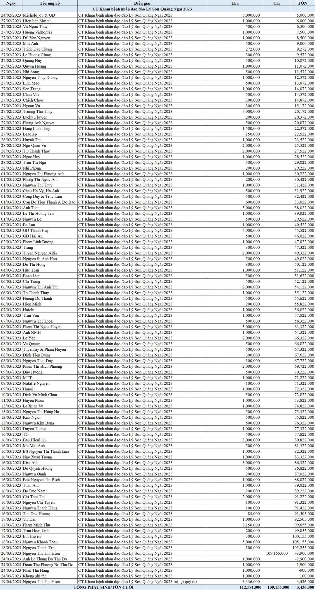 Tổng kinh phí nhận được ( thủ quỹ diễn đàn) là: 112.155.000 triệu đồng. ( File đính kèm)