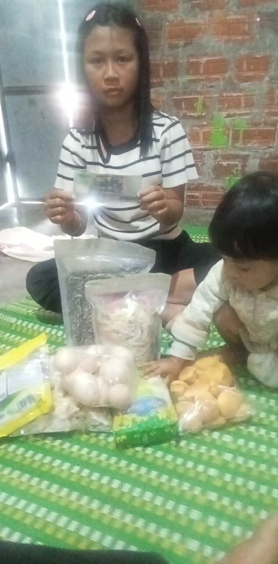 E cũng trao thêm 500.000 đ CMTX t12: 100.000 gia vị, 150.000 đ mì, 100.000 đ trứng, 75.000 đ giấy vs , 75.000 đ cá