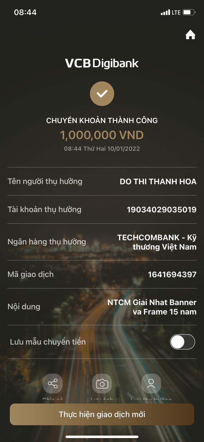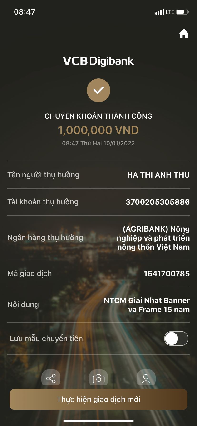 Ban Tổ chức đã chuyển khoản tiền thưởng tới hai bạn Anh Thư và Lucky Flower (Đỗ Thị Thanh Hoa) rồi ạ!