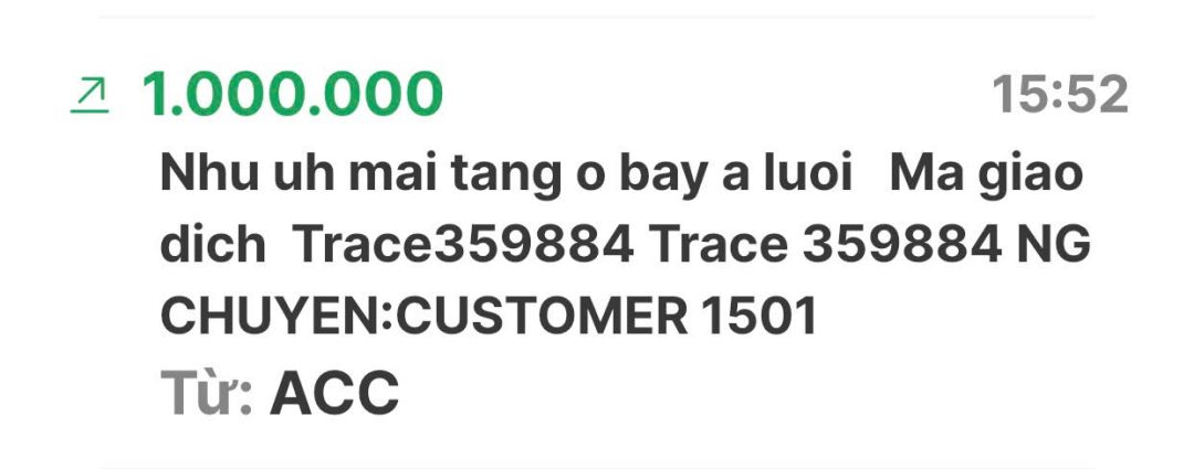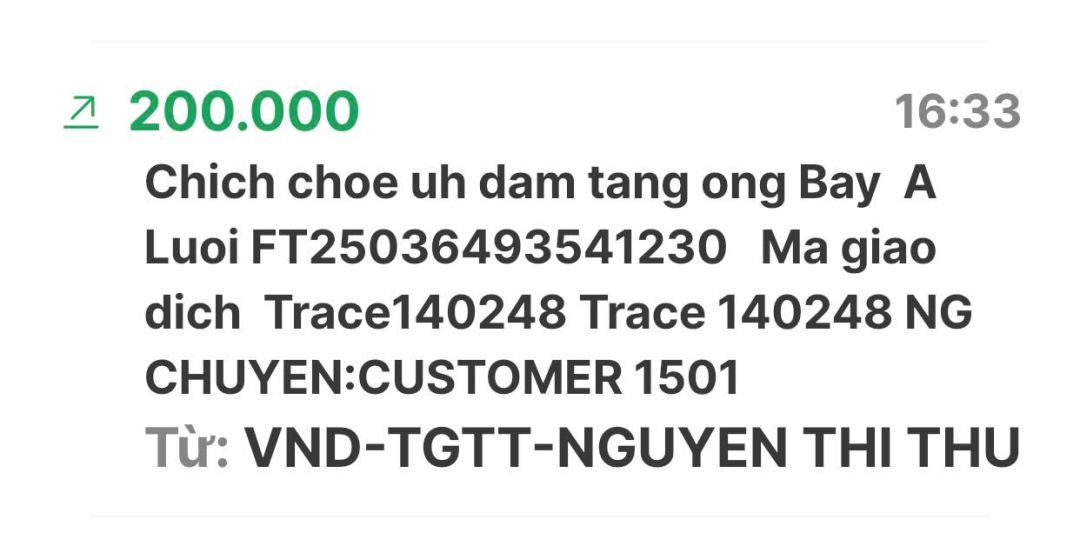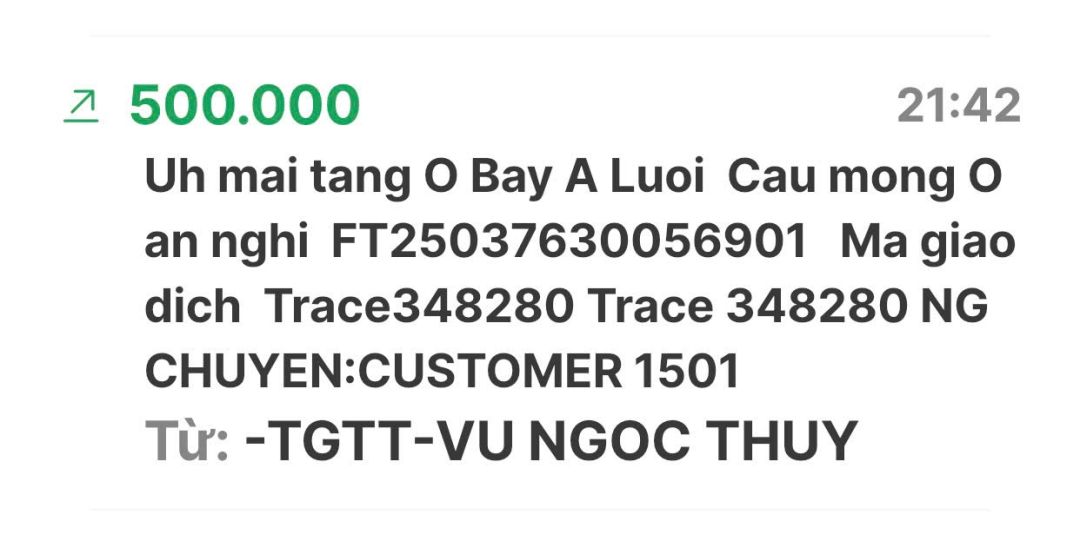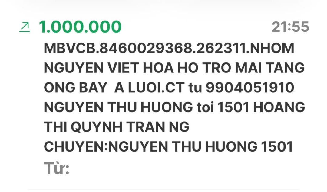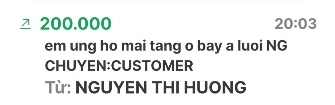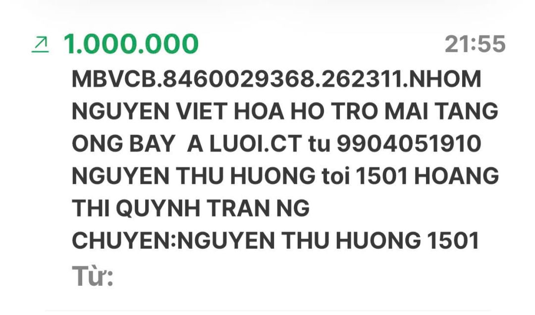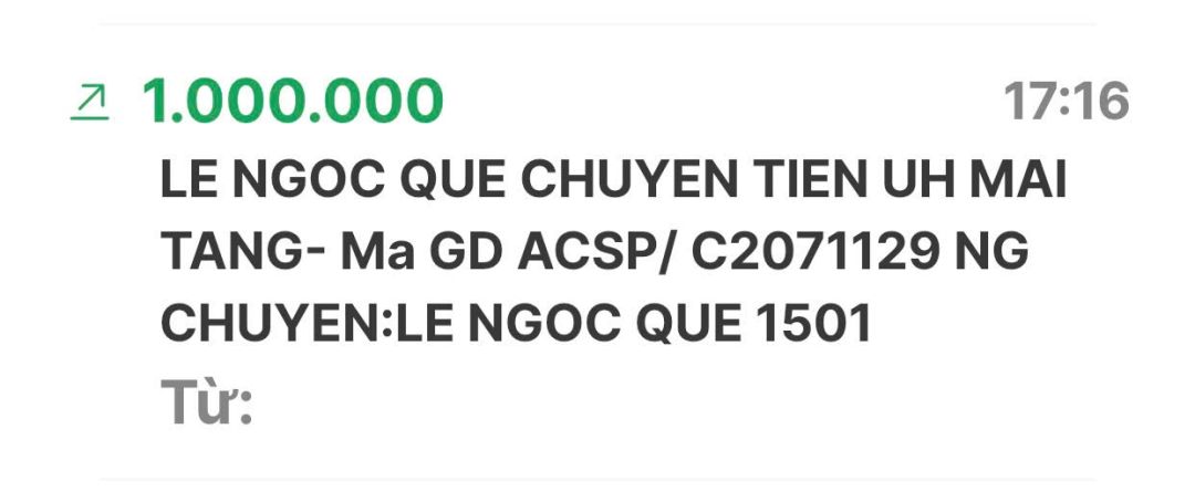 Em Pi Riu Thế đã nhận đủ số tiền 10.000.000đ (Mươi triệu đồng) của nhóm NTCM chuyển khoản rồi ạ