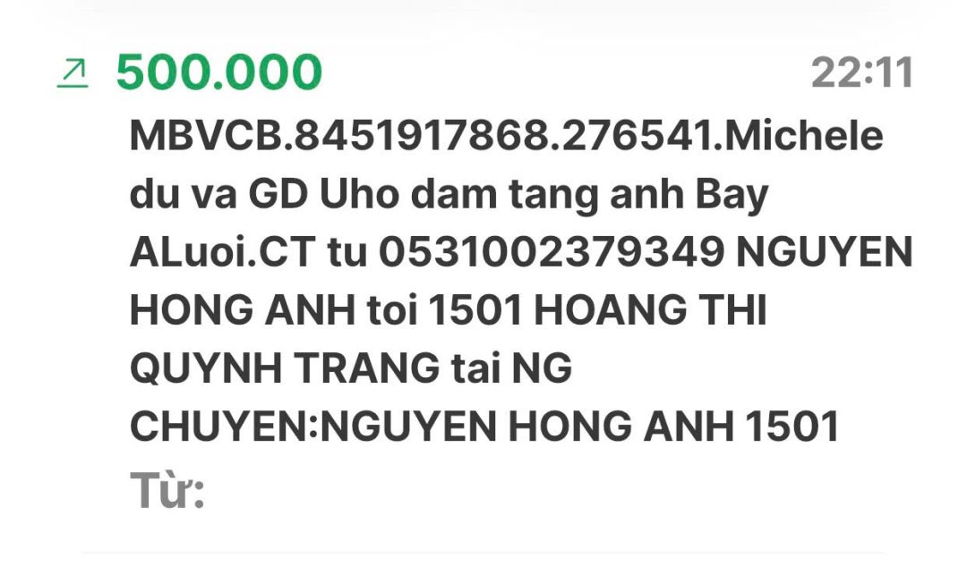 Em xin khẳng định tổng số tiền là 11 triệu. Chứ không phải 10 triệu và nhóm Hạnh Dương Việt Hoa chuyển khoản 2 lần và như sau: