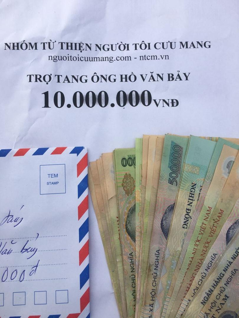 Tổng số tiền quý MTQ ủng hộ mai táng ông Hồ Văn Bảy là 9.000.000đ (Chín triệu đồng)