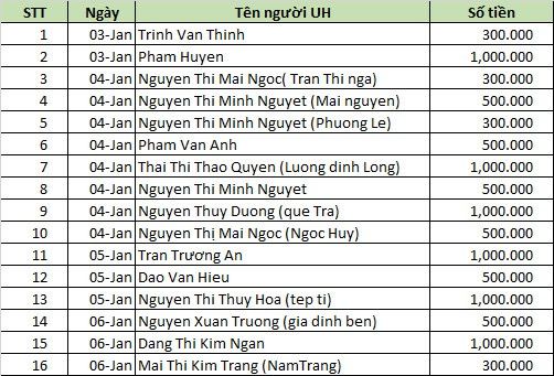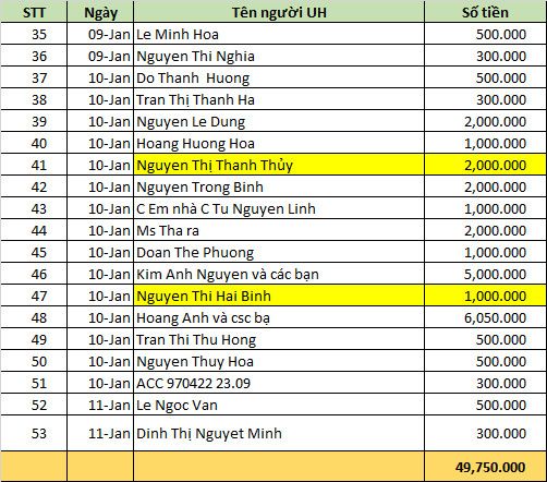 Đúng là tâm khởi trùng trùng duyên khởi, tính đến 15.00 ngày 12/01/23 quỹ NTCM đã nhận được UH bằng hiện kim của 53 mạnh thường quân với tổng số tiền là 49.750.000 đ