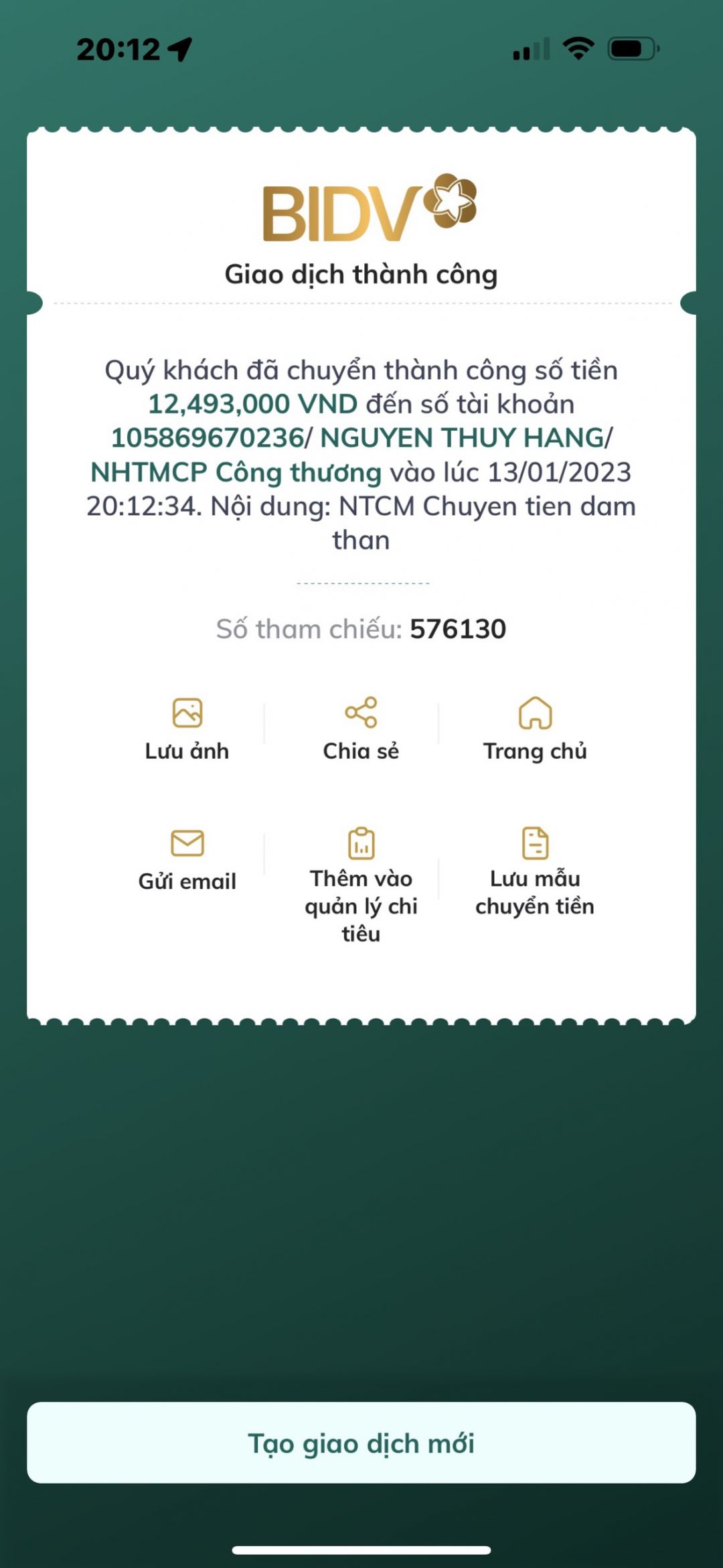 Vịt đã chuyển 49.750.000đ vào tài khoản Hiền Linh. Cảm ơn anh banbe6x.