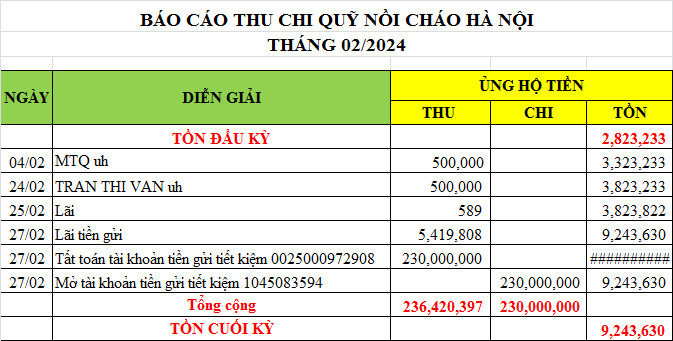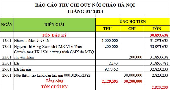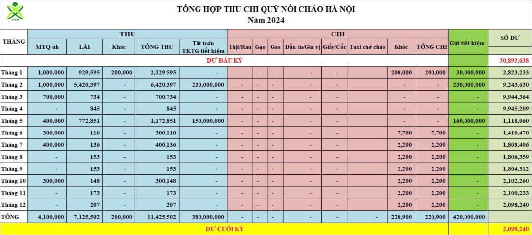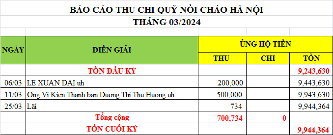 Re: Nồi cháo Hà Nội - Thống kê cưu mang, Báo cáo thu chi năm 2024