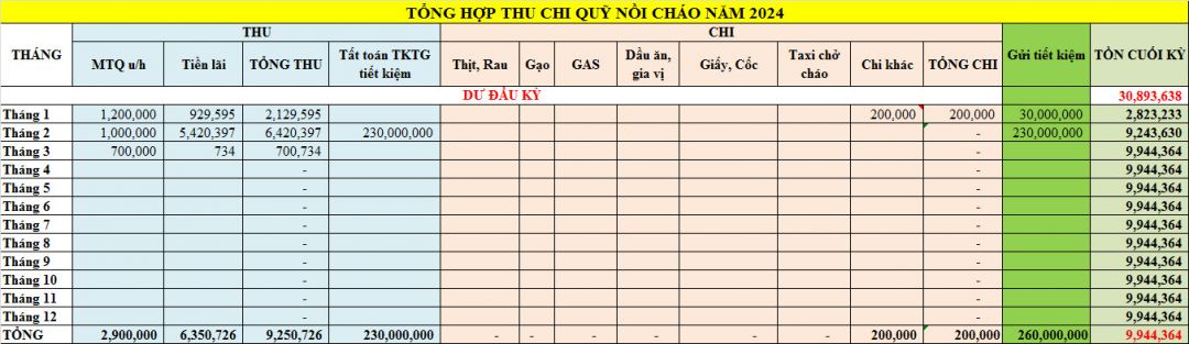 Hiện tại, nồi cháo đang tạm dừng hoạt động, do đó chị thủ quỹ đảm đang tháo vát của chúng ta đã mở thêm tài khoản tiền gửi tiết kiệm. Nhờ đó mà nồi cháo có thêm khoản thu từ lãi tiền gửi. Yêu lắm luôn ạ.
