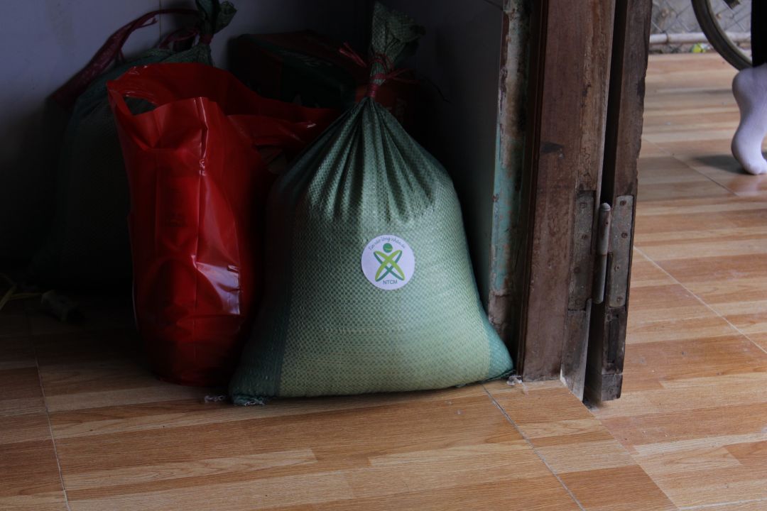 : 300.000đ tiền mặt, 20kg gạo, 1 bịch bánh pía, nhu yếu phẩm (muối, đường, nước tương, bột ngọt)