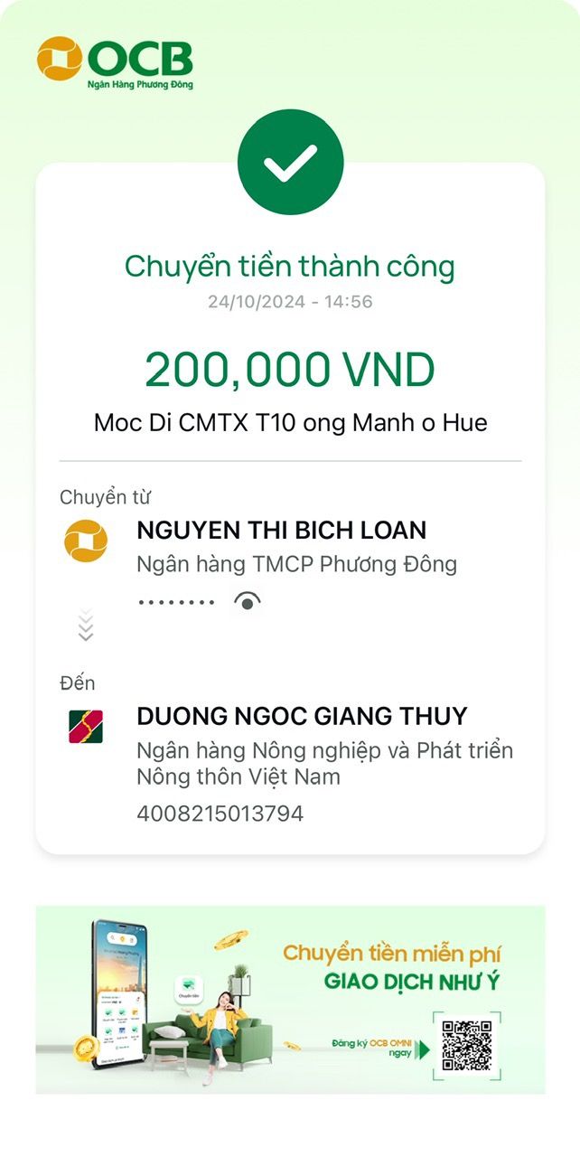 Loannguyen đã chuyển tiền CMTX T10 cho Wendy Duong rồi nhé.