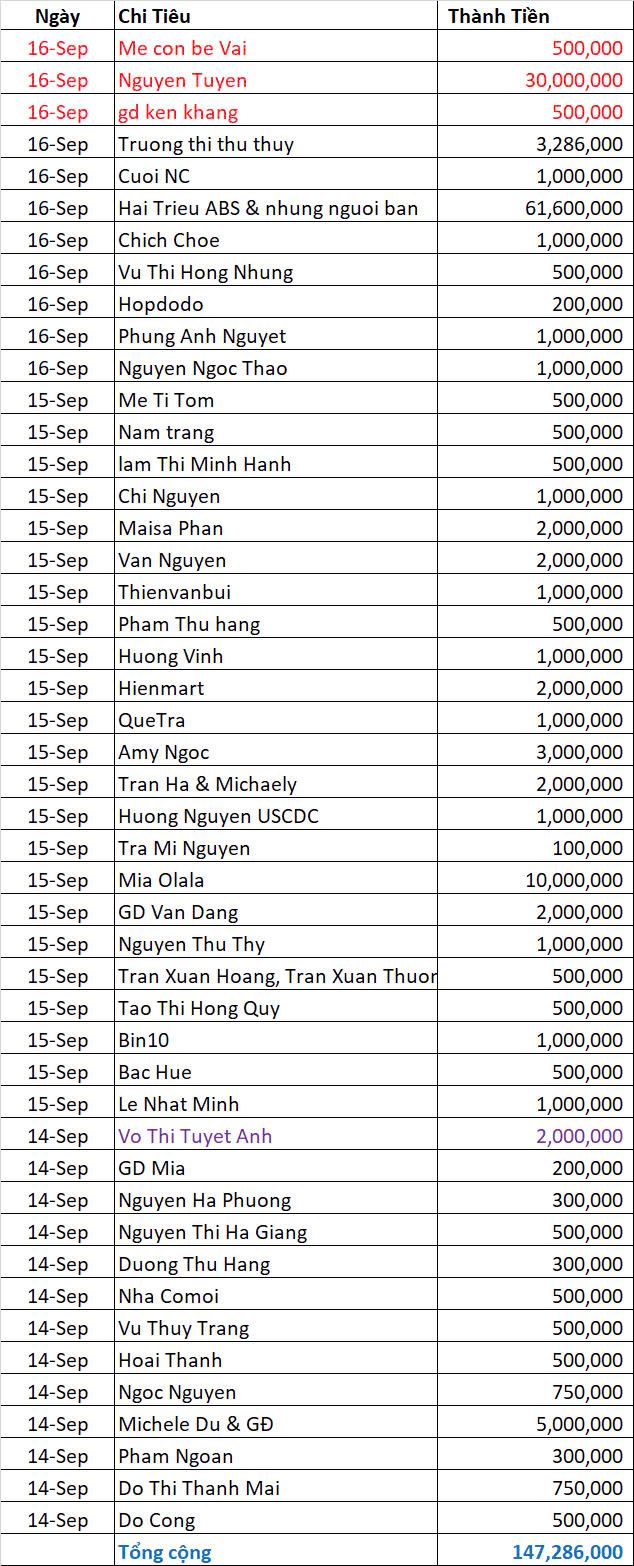 Vịt cũng mới tổng hợp là tổng số ủng hộ đến thời điểm này như dưới, Jenny Sún đối chiếu lại giùm chị với nhé.