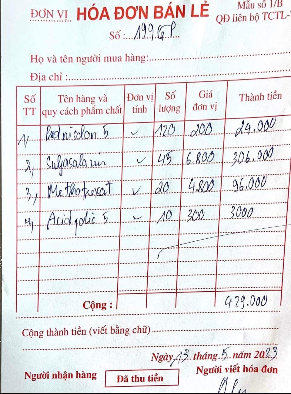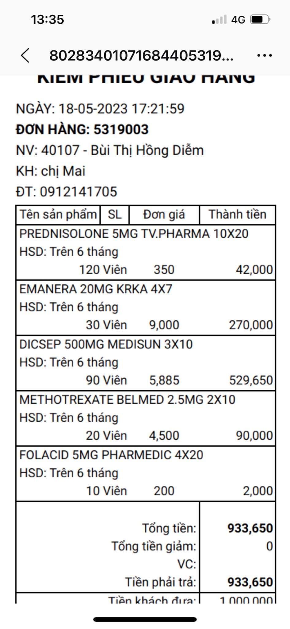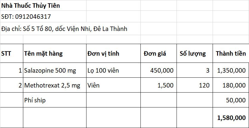 - Mua thuốc đợt 1: 429.000 đ + 90.000 đ (Esoperazole) = 519.000 đ