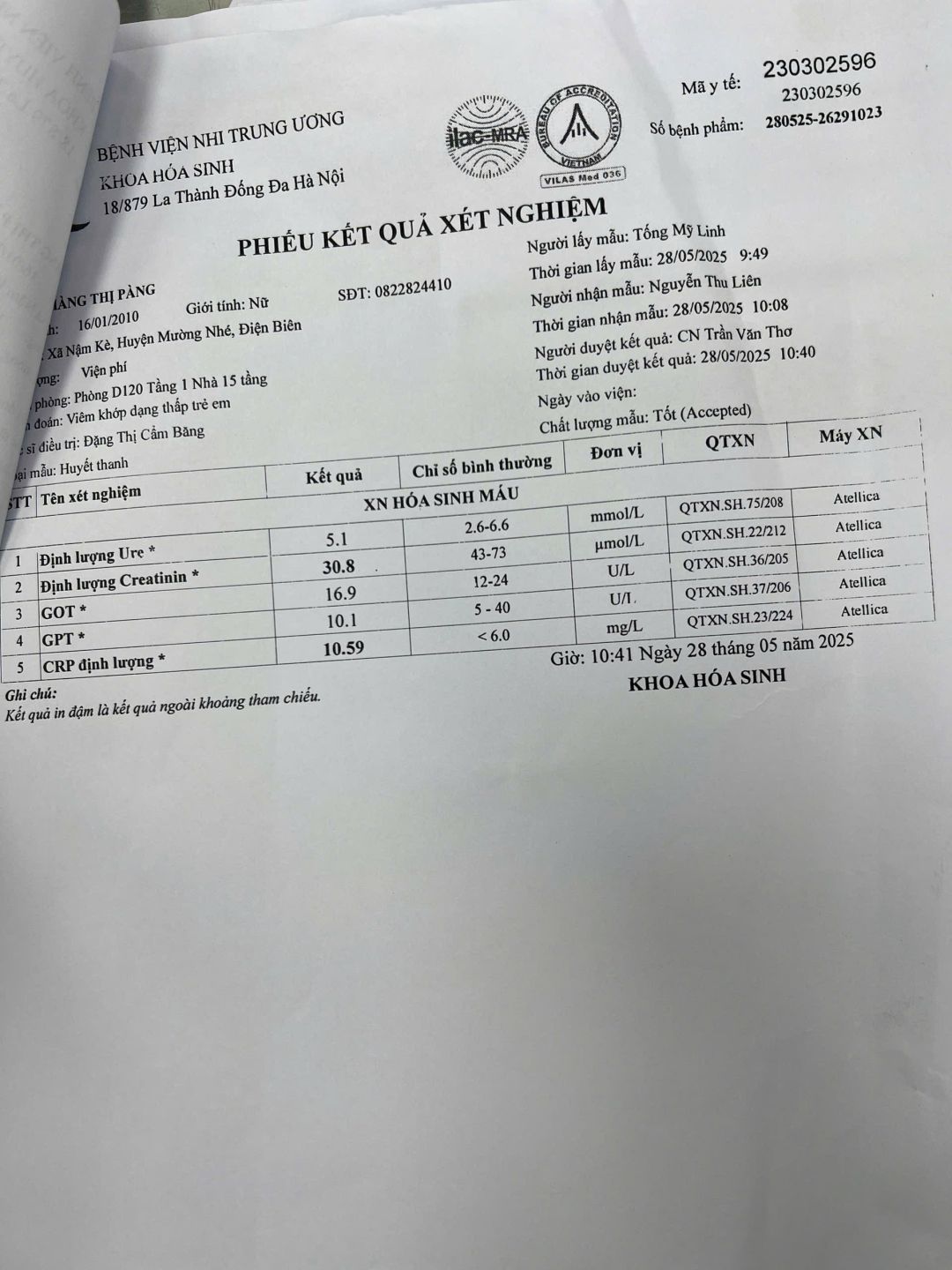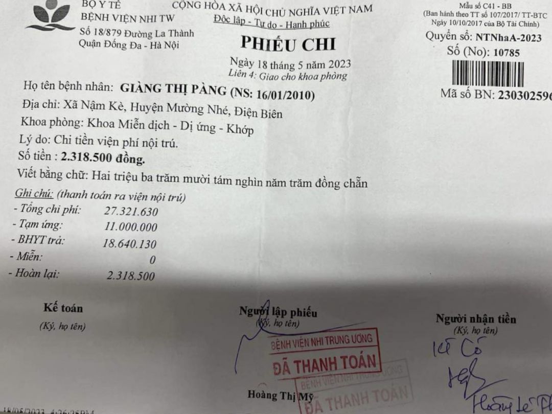 Cháu vẫn nhận thuốc và khám bệnh tại Mường Nhé và BHYT thanh toán hoàn toàn nên thời gian qua chưa sử dụng tới tiền cưu mang của NTCM. Maitan sẽ liên hệ lại xem tình hình của cháu thế nào?